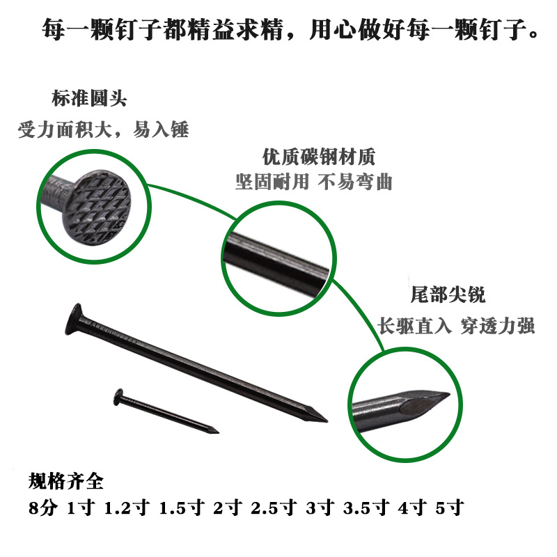 铁钉散装圆钢钉大长木工钉子小洋钉圆头 500g