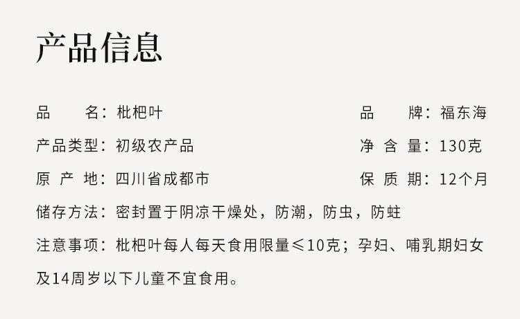福东海 枇杷叶130克 枇杷叶茶叶干 泡水养生茶