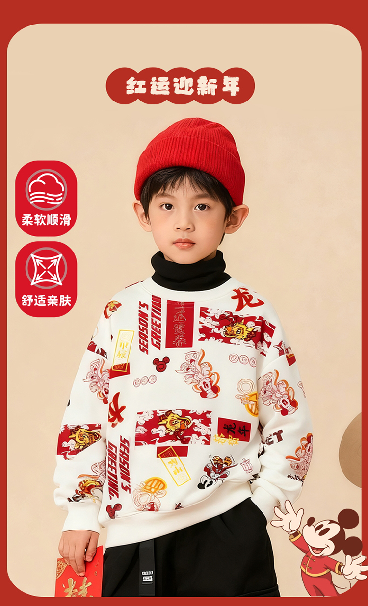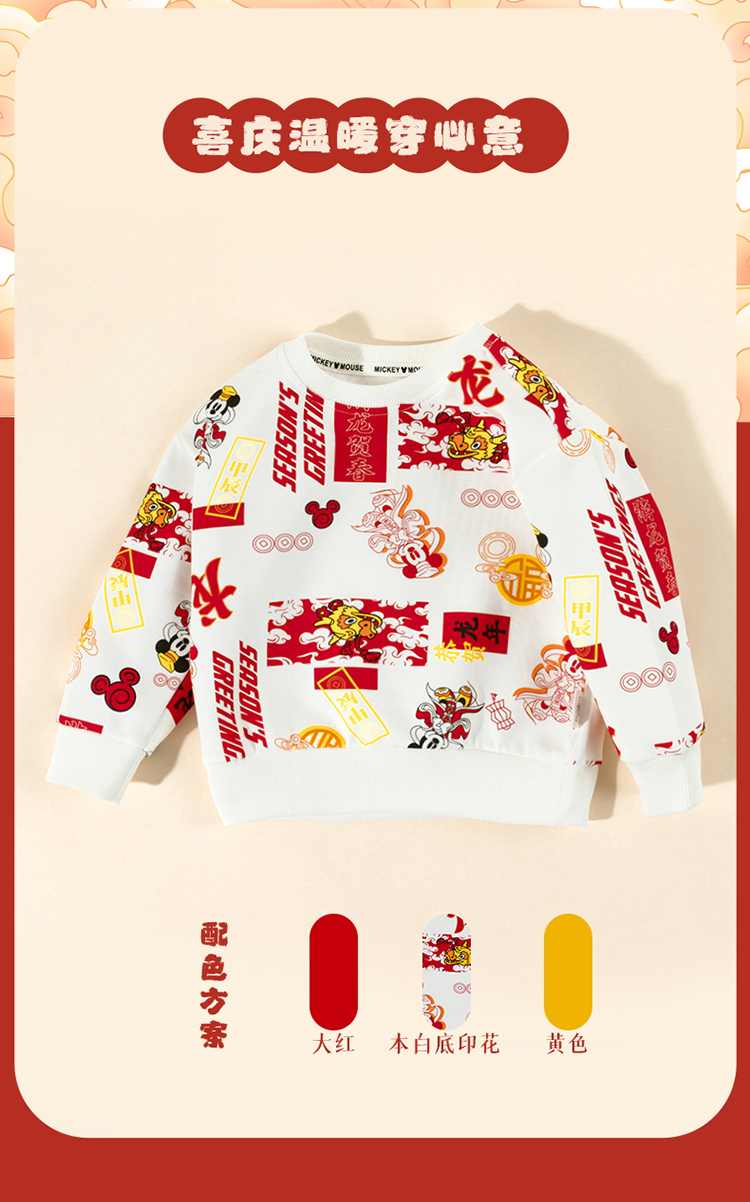 迪士尼男童新品拜年套头卫衣XD1DS032