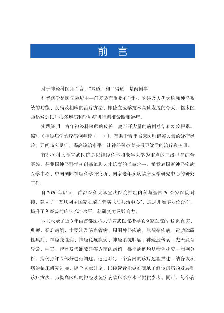 《神经病学诊疗病例精粹(一)》一书收录了近3年由首都医科大学宣武医院指导的9家医院的42例真实、典型、疑难病例,主要涉及脑血管病、周围神经疾病、脱髓鞘疾病、运动障碍性疾病、神经变性病、神经免疫疾病、神经系统肿瘤、神经遗传病、先天发育异常、中毒、营养及代谢障碍等方面的病例。每个病例均从病例摘要、病例分析、病例点评3部分进行阐述,通过对每一个病例的诊疗过程描述,结合该疾病的临床研究进展,综合文献讨论,以便读者能更准确地了解该疾病的发展和诊疗方法,为提高医师的神经系统疾病临床诊疗水平提供参考。同时,每个病例从发病机制、临床表现、辅助检查、鉴别诊断、治疗等方面进行详细阐述,并总结病例的特点及临床要点,使得一个个生动的“神经病学故事”浅显易懂,更有利于深刻记忆,方便各级神经科临床医师参考借鉴,从而进一步提高临床诊疗水平。
