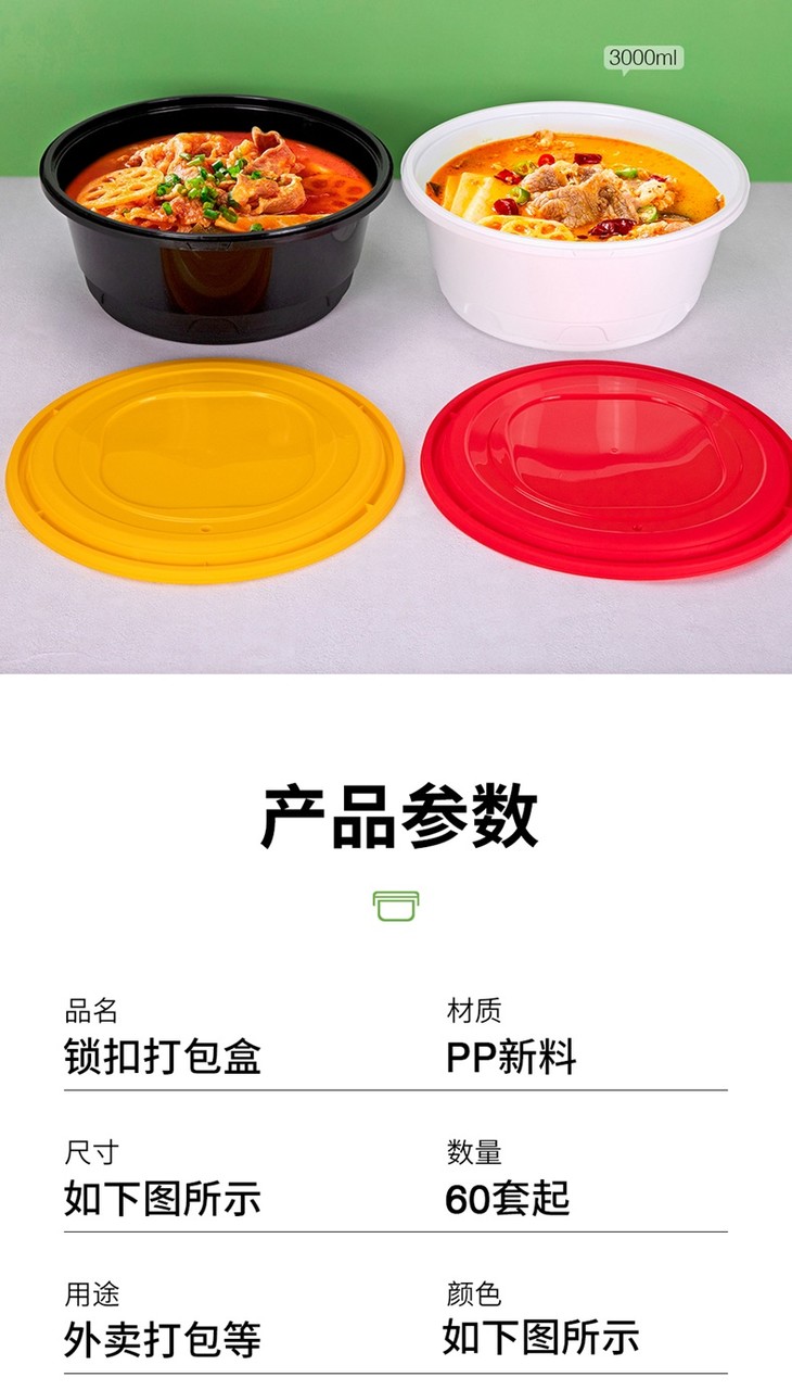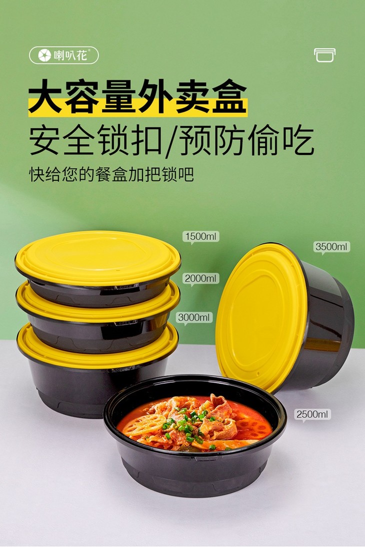 喇叭花一次性防盗锁扣圆盒防漏汤面麻辣烫龙虾圆碗外卖打包盒加厚