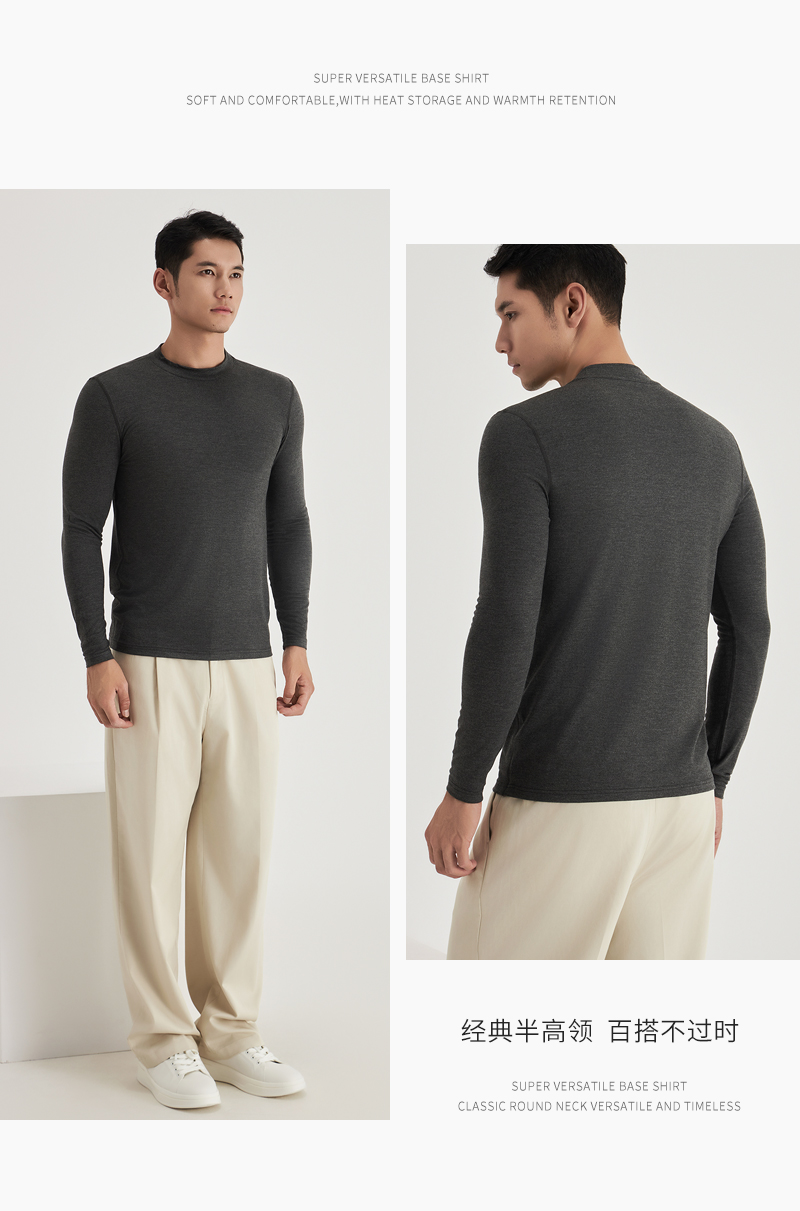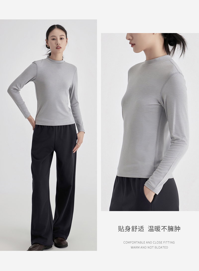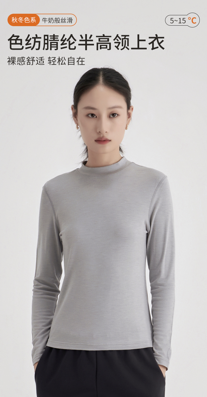 weyo秋冬男女同款色纺腈纶半高领上衣保暖打底T恤A17303、B17303