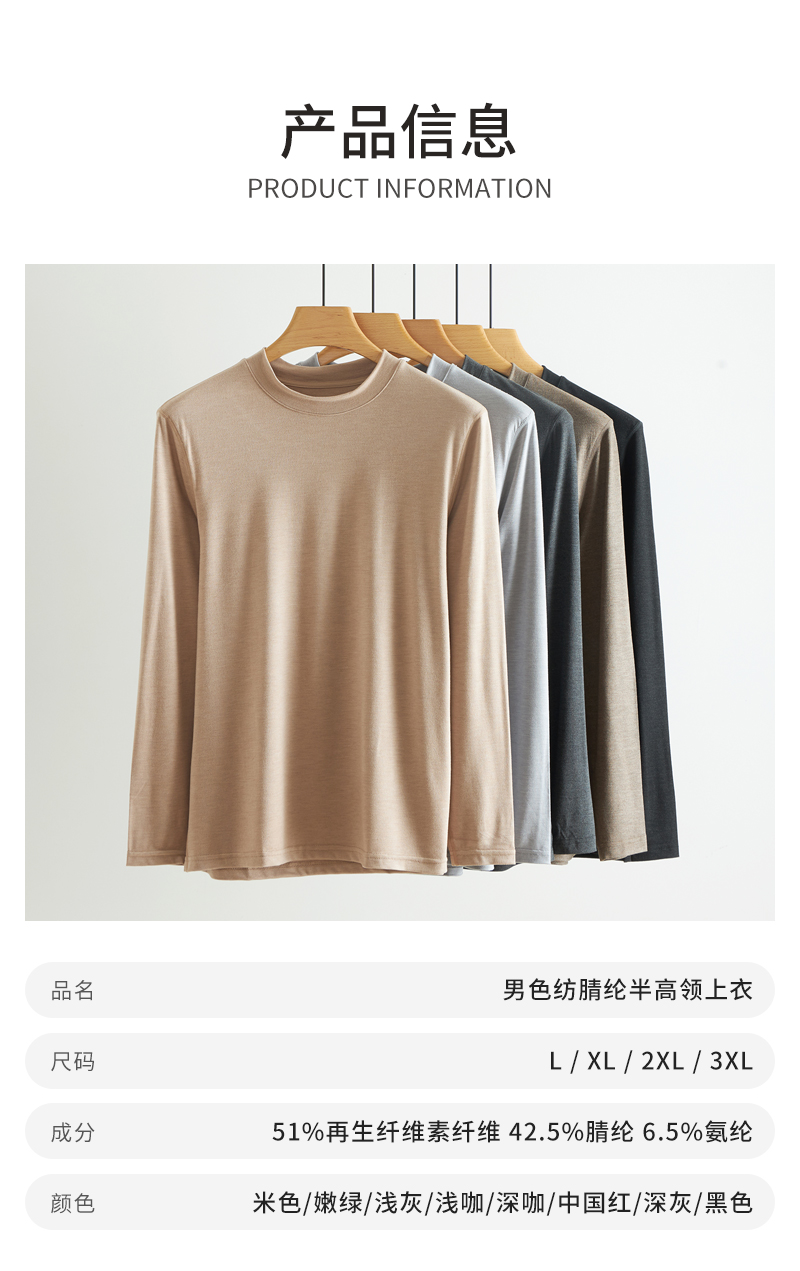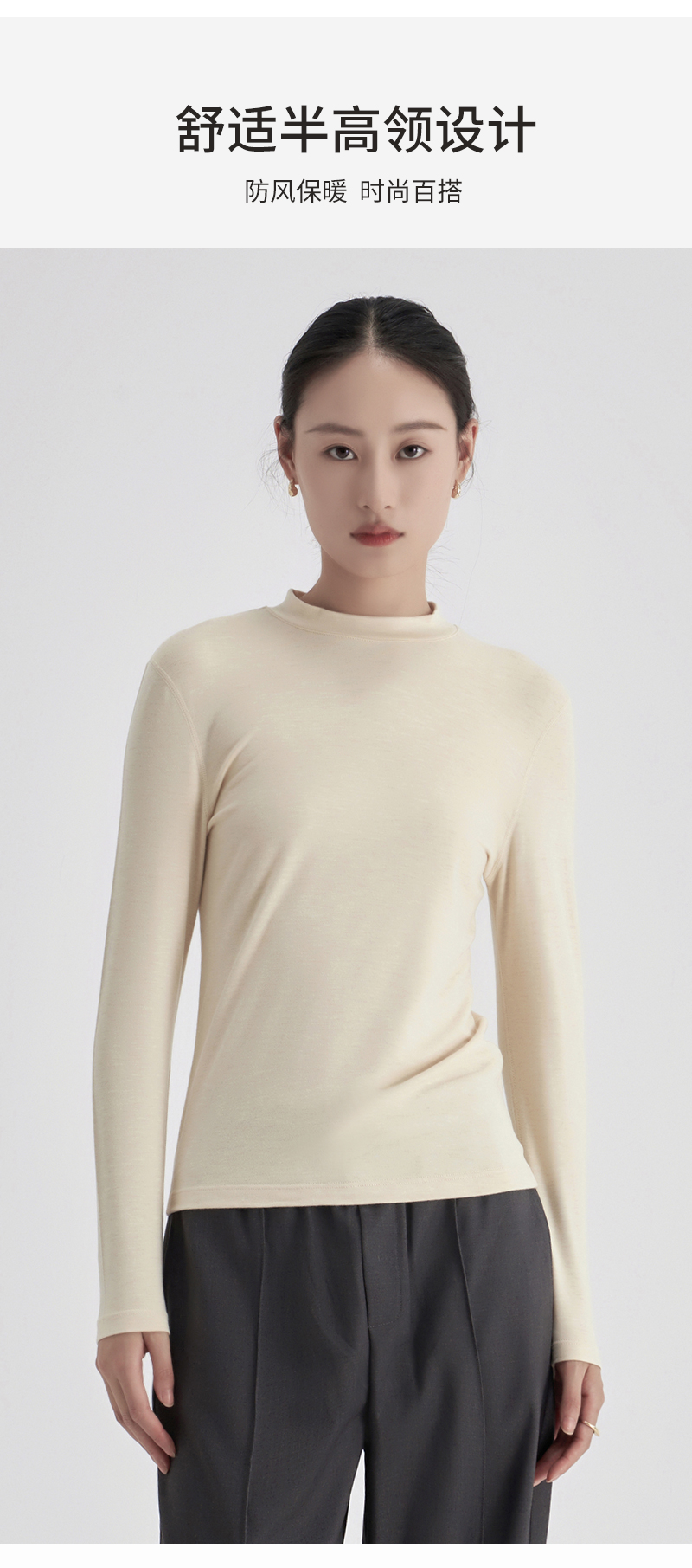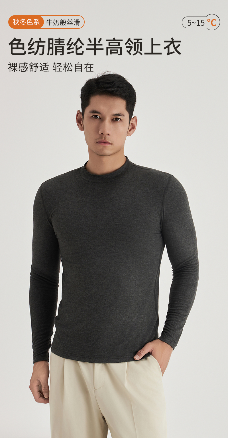 weyo秋冬男女同款色纺腈纶半高领上衣保暖打底T恤A17303、B17303
