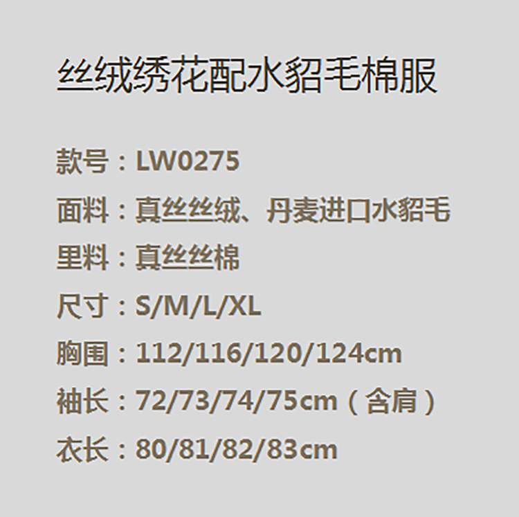 微瑕秒杀| 盛唐牡丹|丝绒绣花配水貂毛棉服[特价品](特殊商品不退不换)