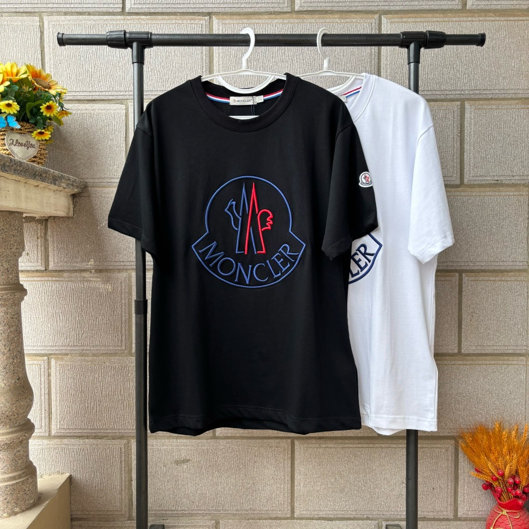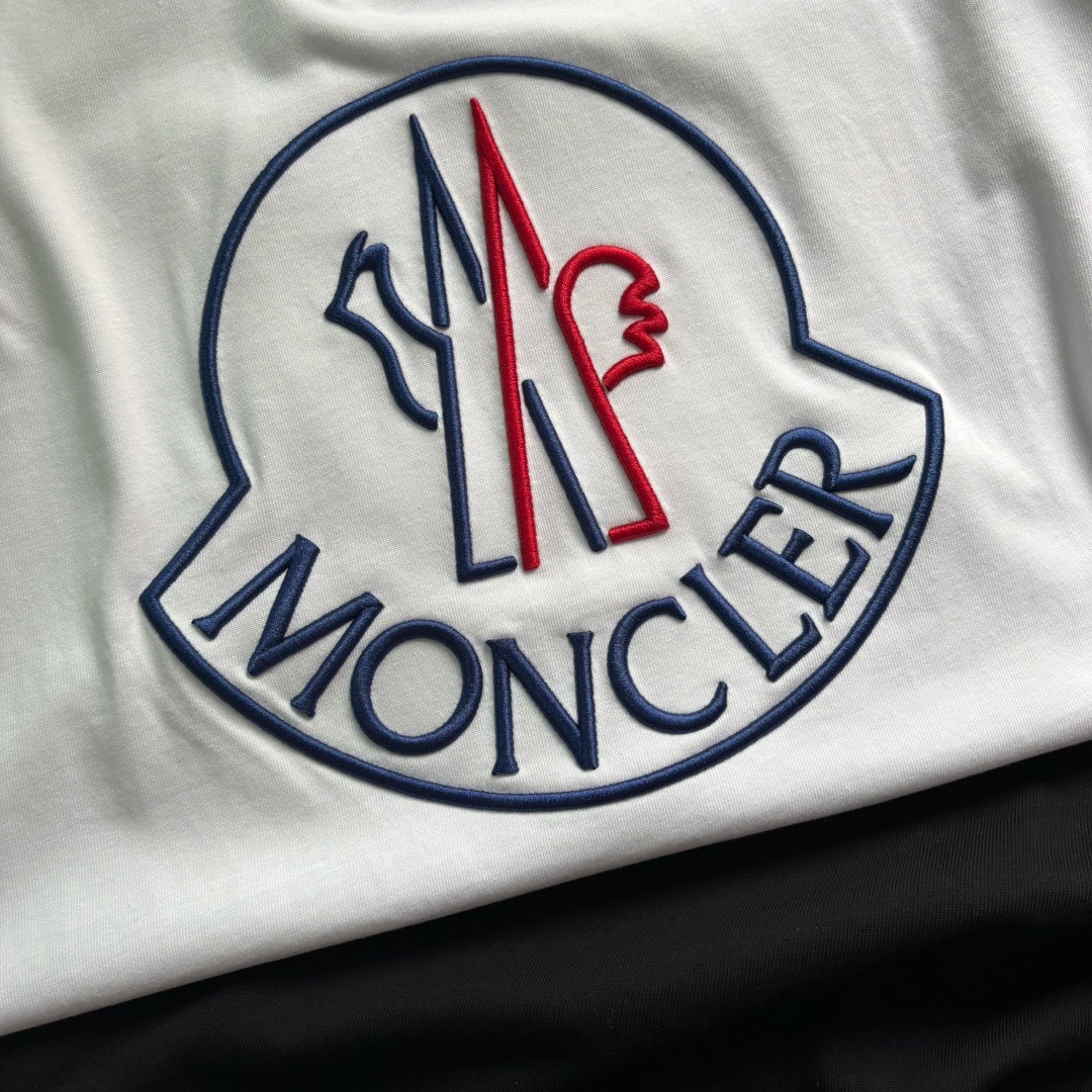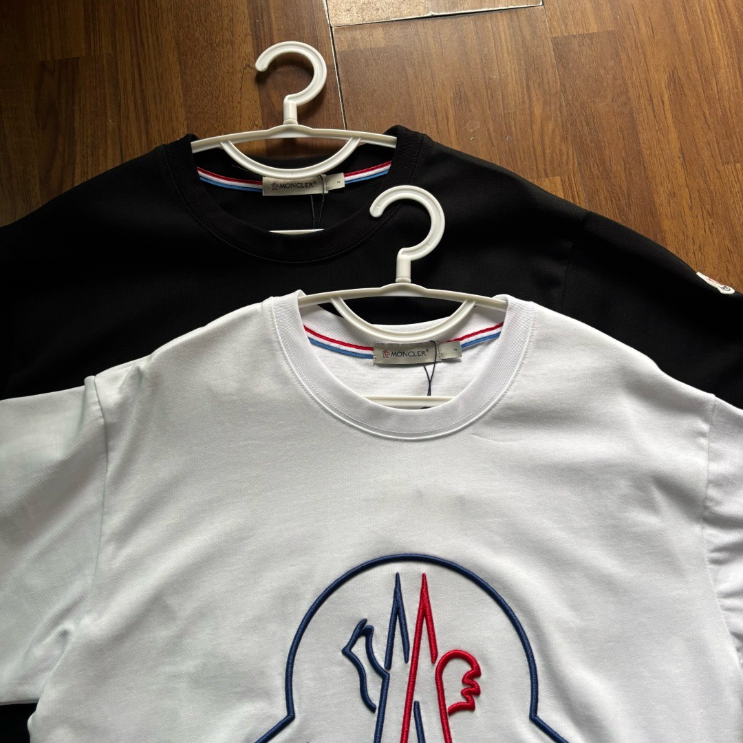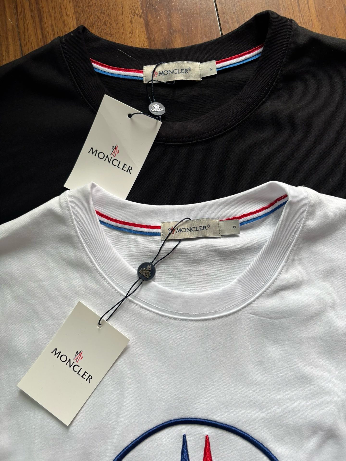 两色红蓝白黑拼色立体大标刺绣标情侣款短袖T恤 MONCLER蒙口短袖T恤的价格其实蛮有优势的 去过专柜的应该都知道蒙口的价格不会比gucci burberry 便宜多少 只是相对低调 不愿意炒作 一幅你们爱买不买的 孤傲的存在...独家定制270克32支双纱滑爽棉质感非常柔软舒服 100%区别市场的顶级面料 不缩水 不变形 不起球 搭配280克1*1螺纹(面料螺纹同缸定染无色差 螺纹不易变形