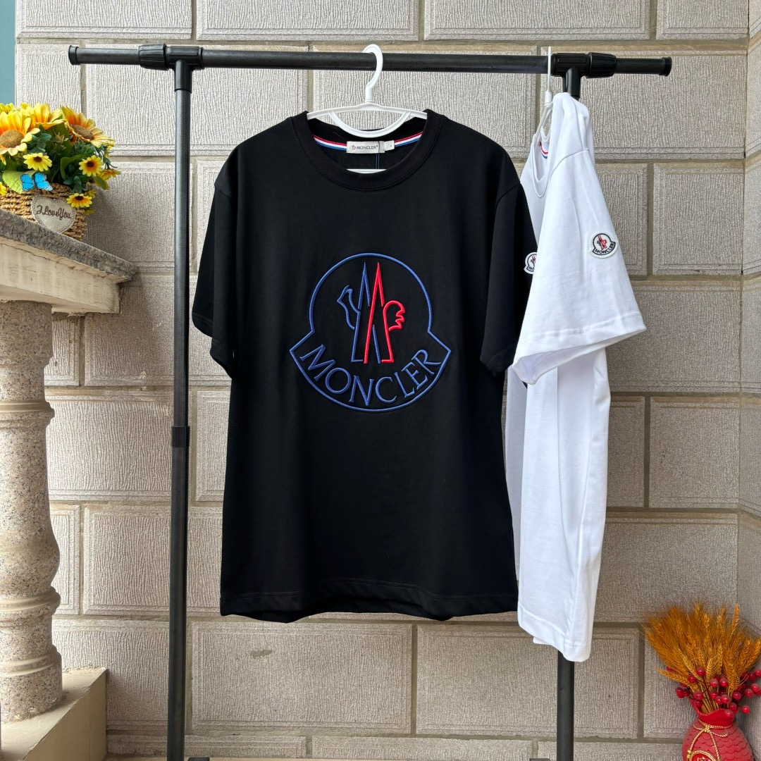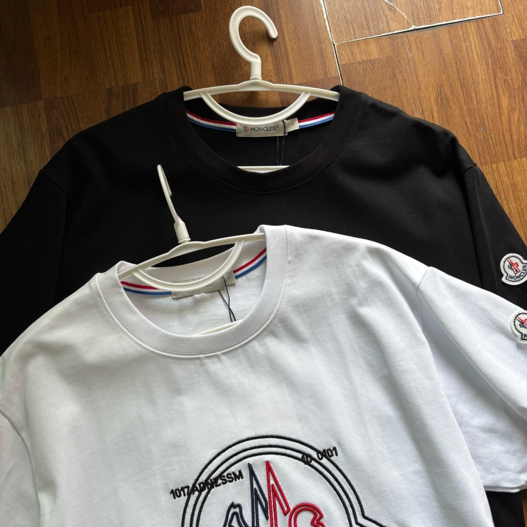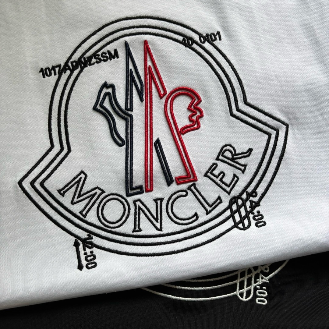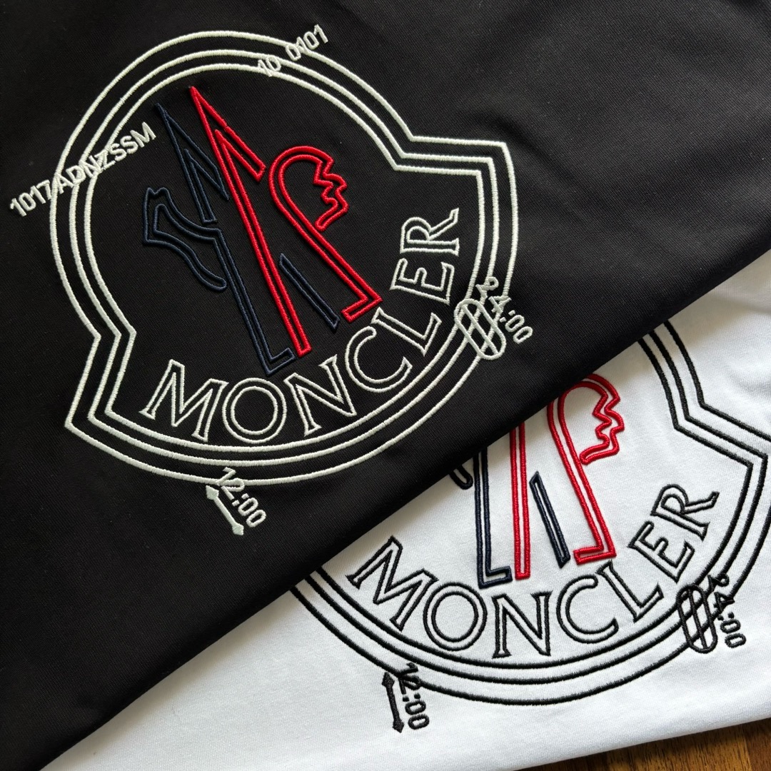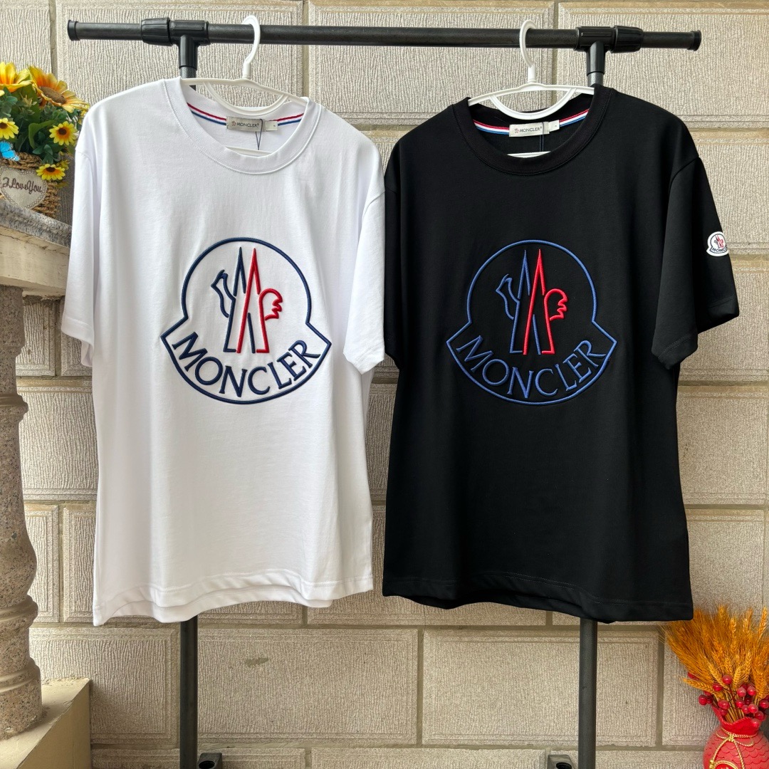 两色红蓝白黑拼色立体大标刺绣标情侣款短袖T恤 MONCLER蒙口短袖T恤的价格其实蛮有优势的 去过专柜的应该都知道蒙口的价格不会比gucci burberry 便宜多少 只是相对低调 不愿意炒作 一幅你们爱买不买的 孤傲的存在...独家定制270克32支双纱滑爽棉质感非常柔软舒服 100%区别市场的顶级面料 不缩水 不变形 不起球 搭配280克1*1螺纹(面料螺纹同缸定染无色差 螺纹不易变形