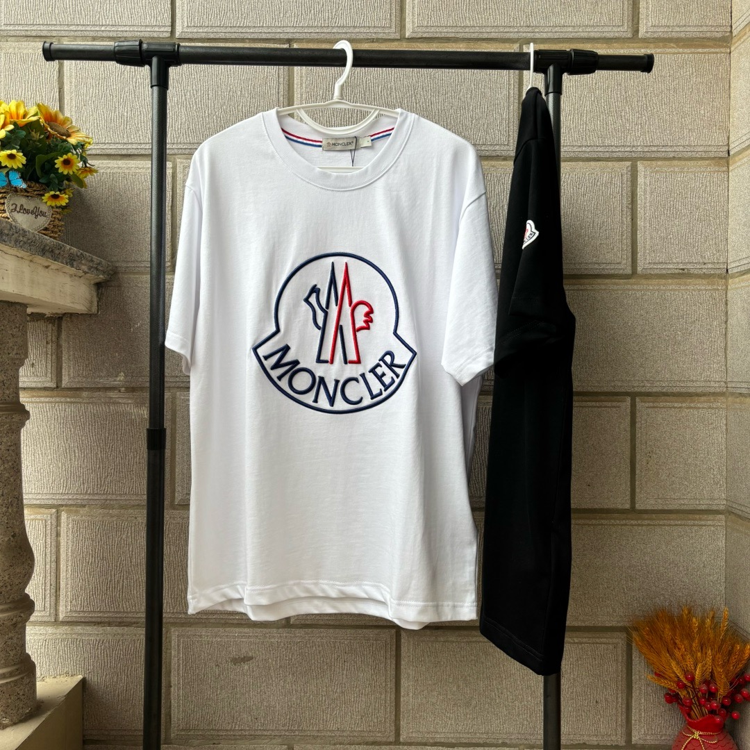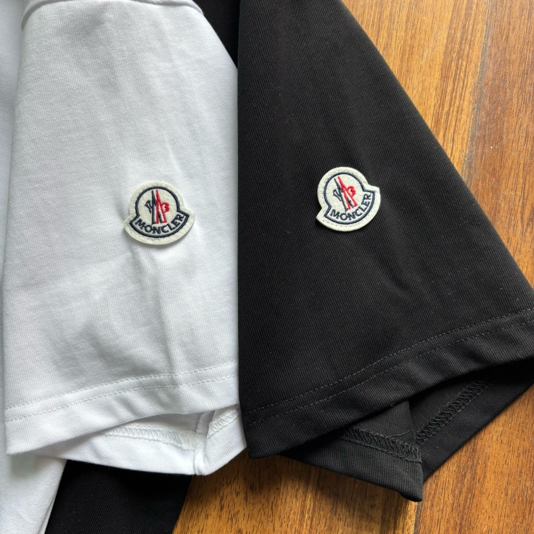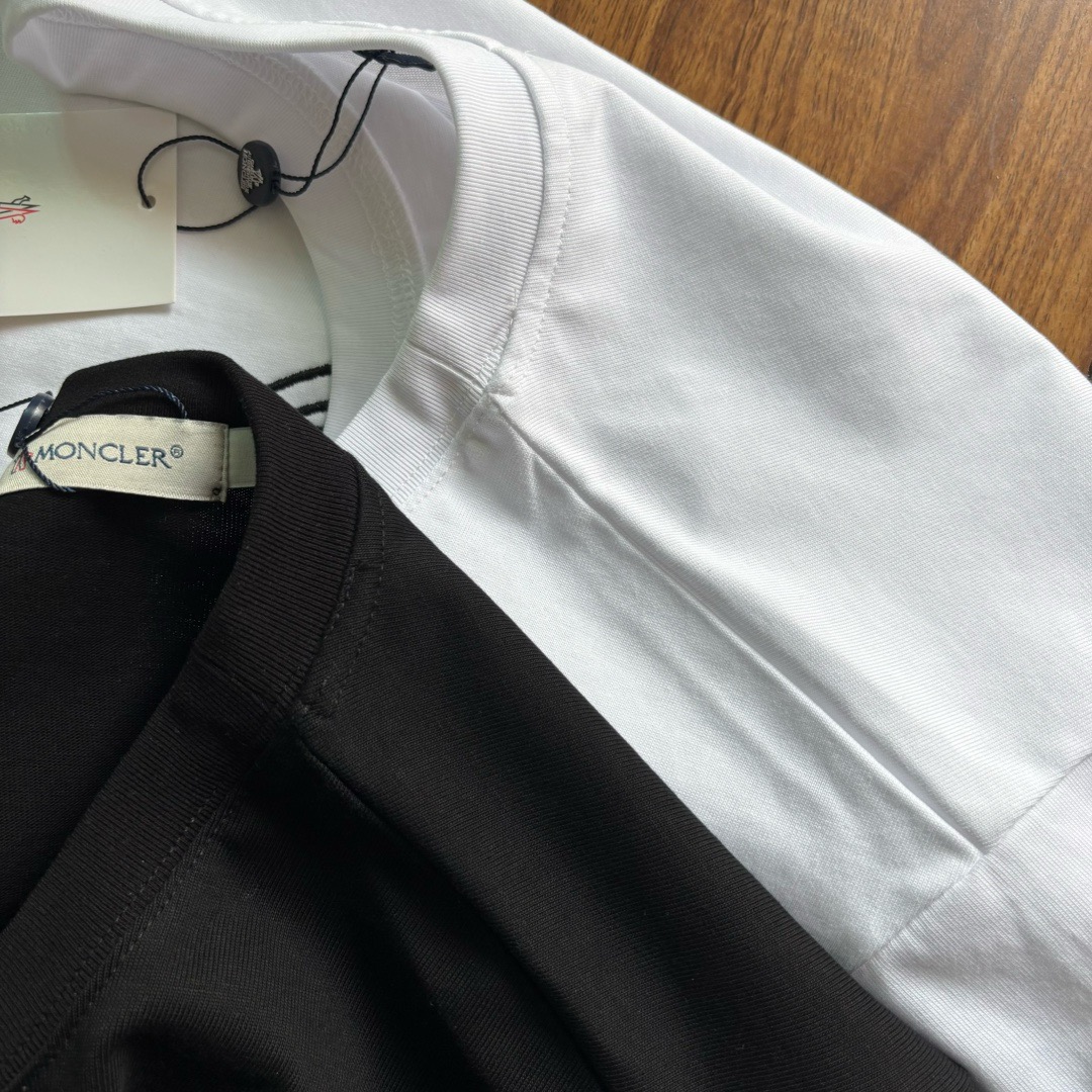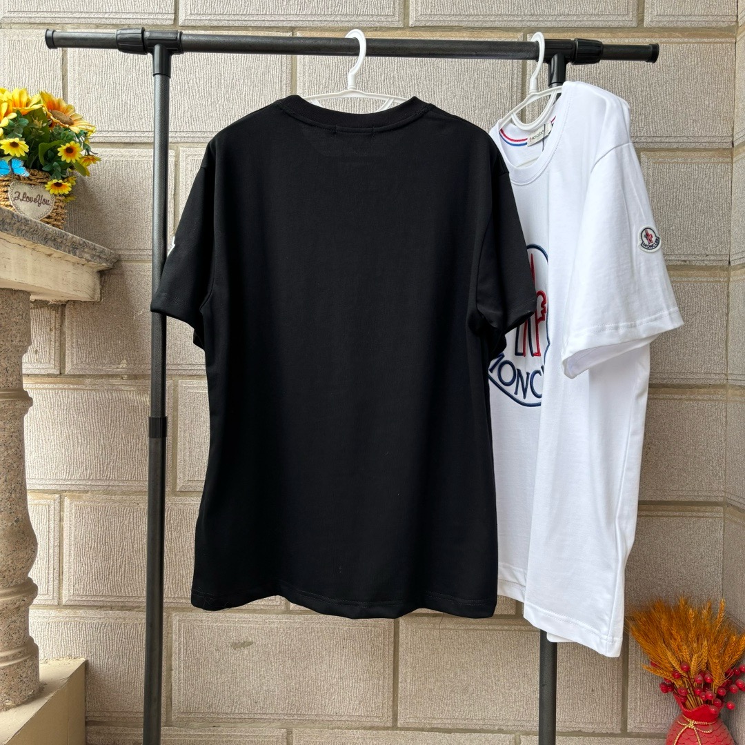 两色红蓝白黑拼色立体大标刺绣标情侣款短袖T恤 MONCLER蒙口短袖T恤的价格其实蛮有优势的 去过专柜的应该都知道蒙口的价格不会比gucci burberry 便宜多少 只是相对低调 不愿意炒作 一幅你们爱买不买的 孤傲的存在...独家定制270克32支双纱滑爽棉质感非常柔软舒服 100%区别市场的顶级面料 不缩水 不变形 不起球 搭配280克1*1螺纹(面料螺纹同缸定染无色差 螺纹不易变形