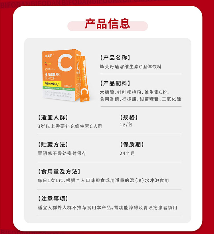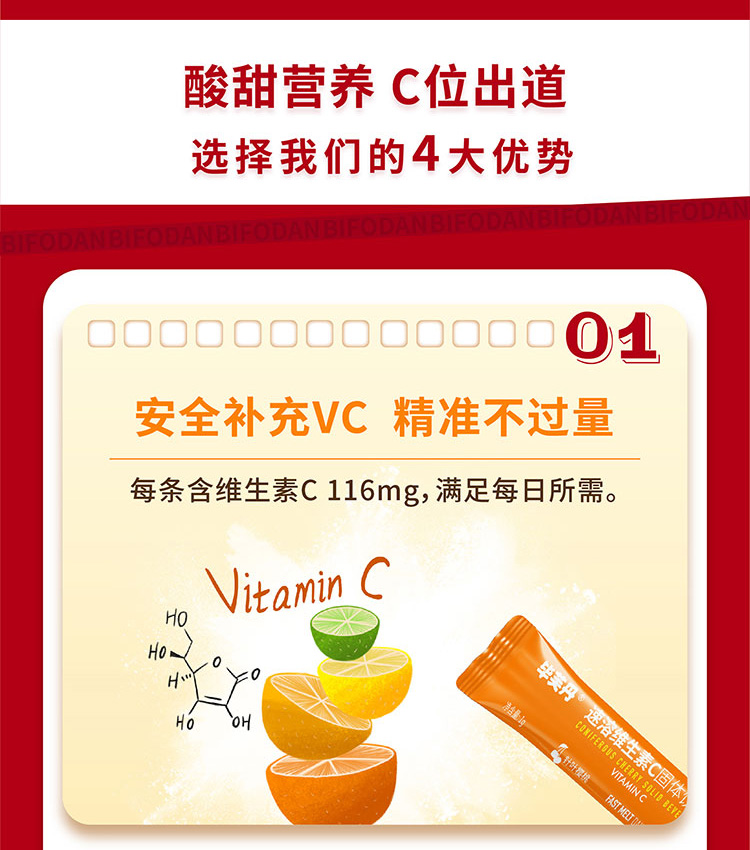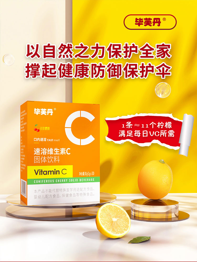 日均补充116mg · 毕芙丹植物配方 针叶樱桃维生素C 便携装VC 30条装|品牌直发
