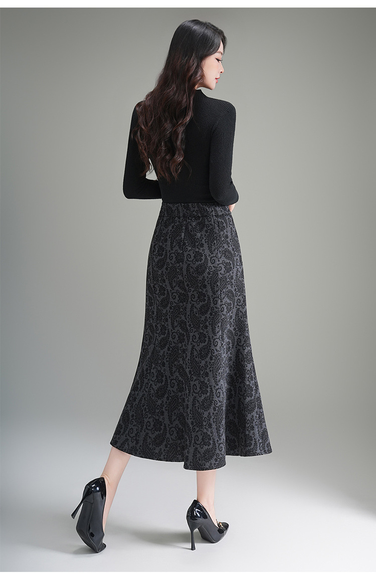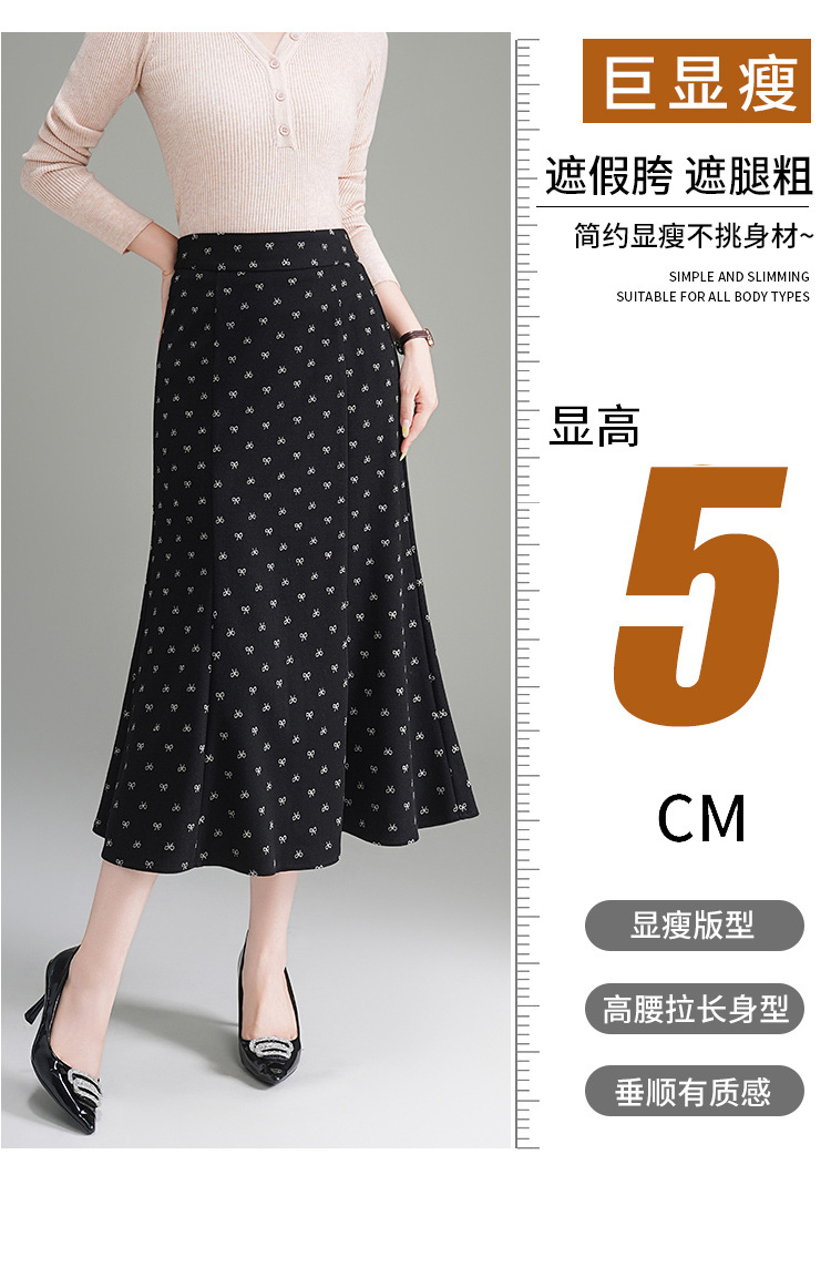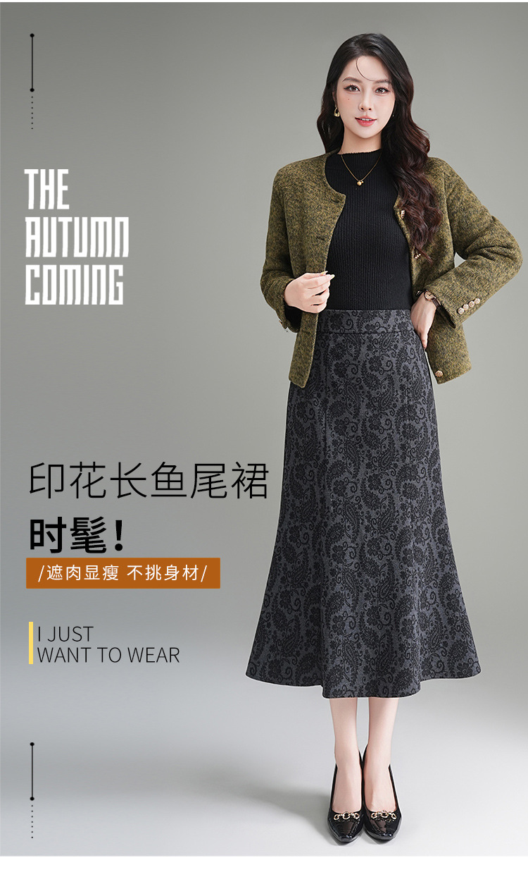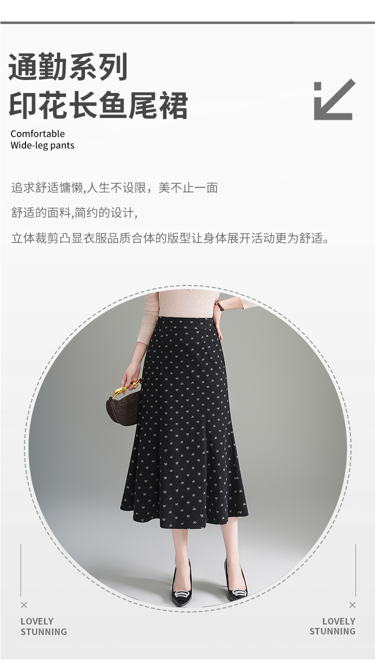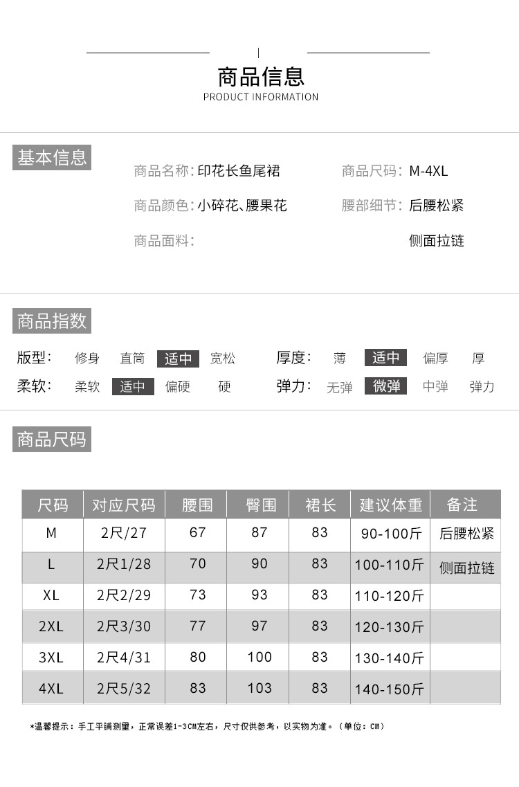 QYM 6323-Y印花长款鱼尾裙高腰包臀裙