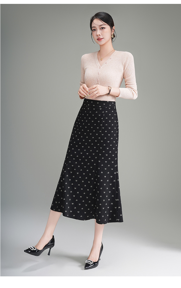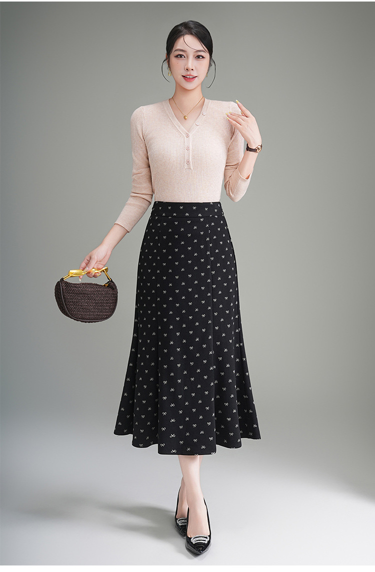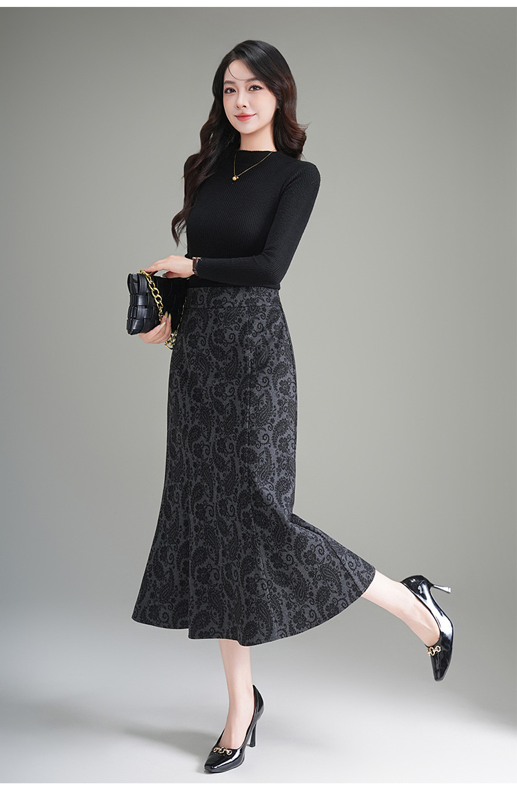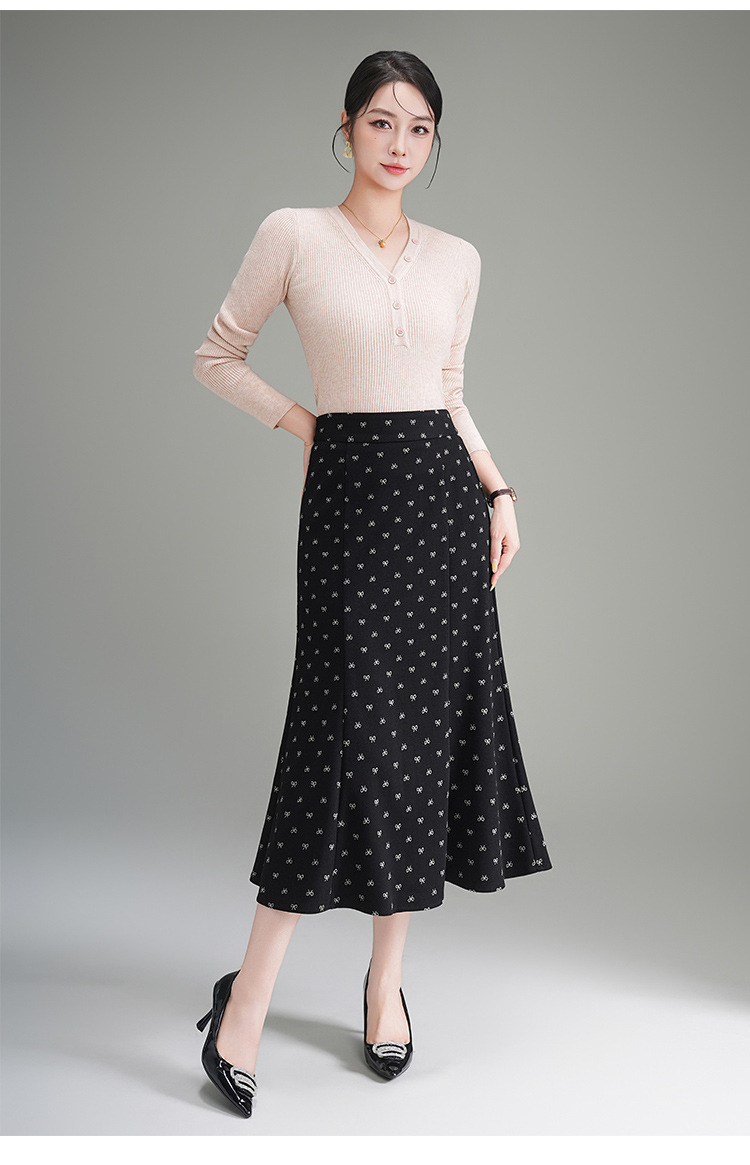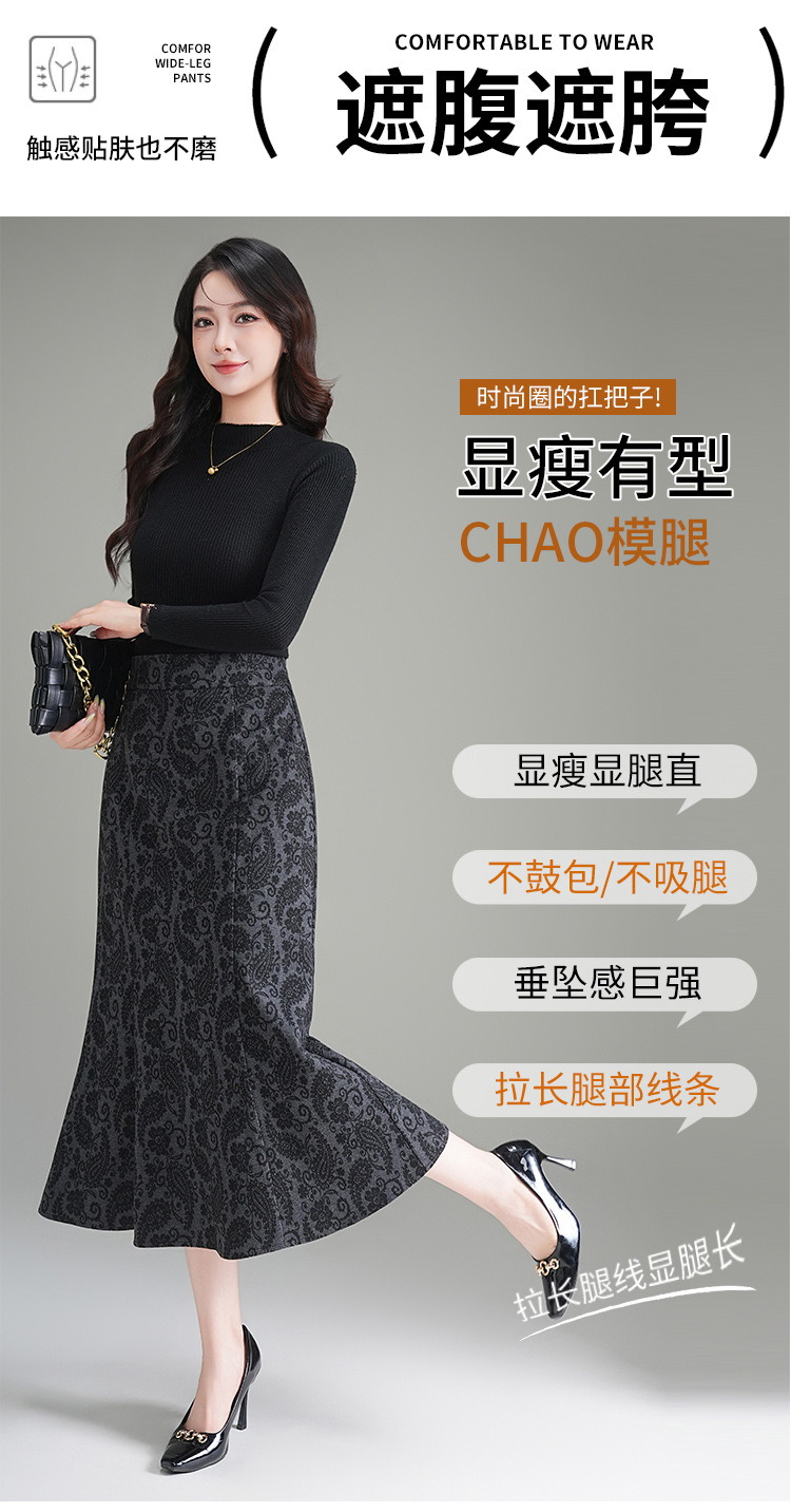 QYM 6323-Y印花长款鱼尾裙高腰包臀裙