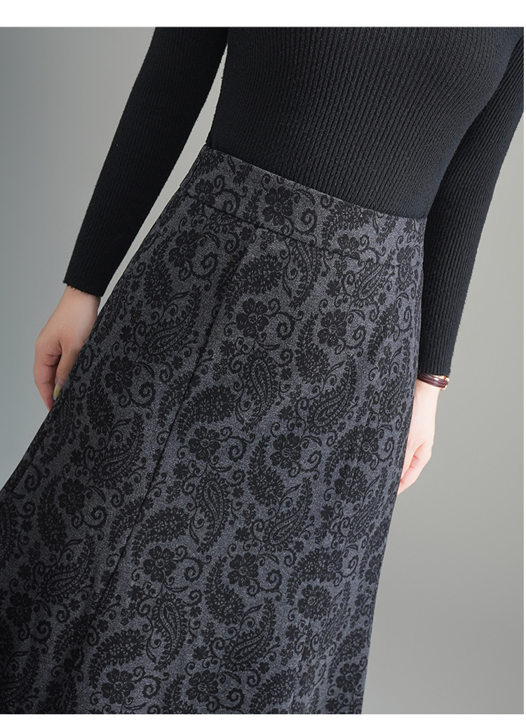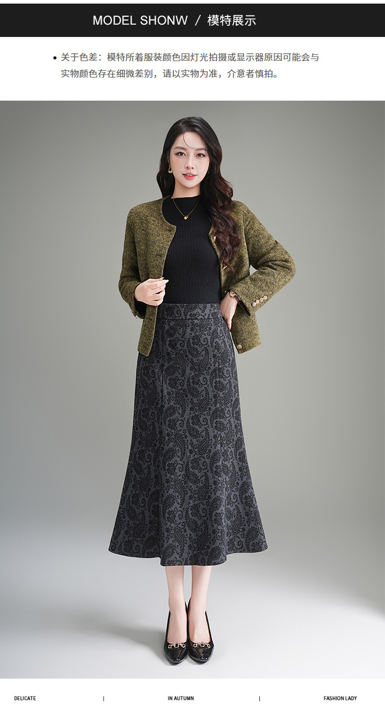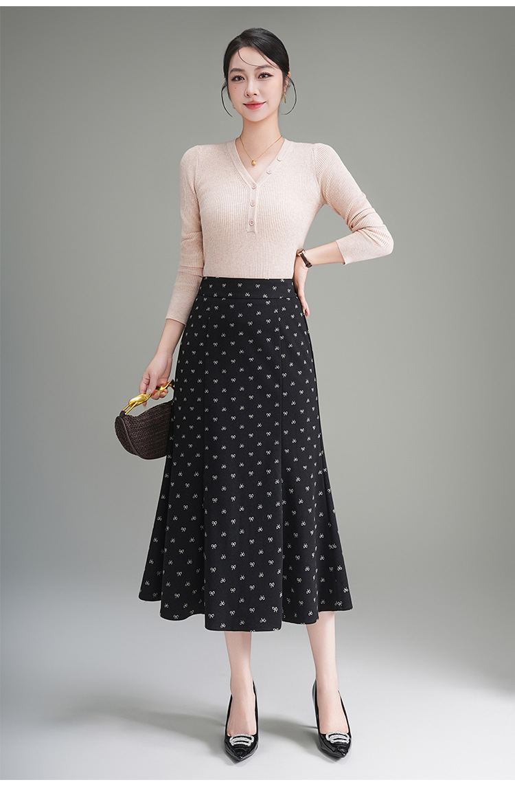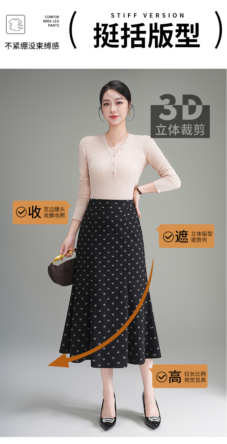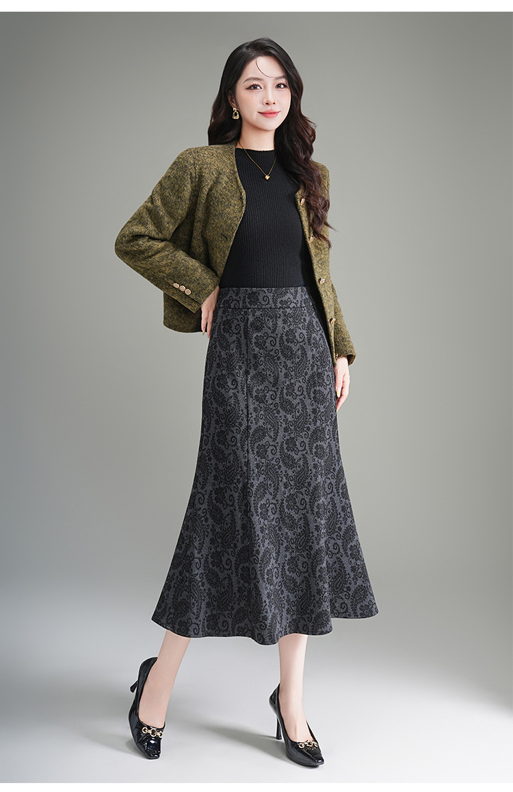QYM 6323-Y印花长款鱼尾裙高腰包臀裙