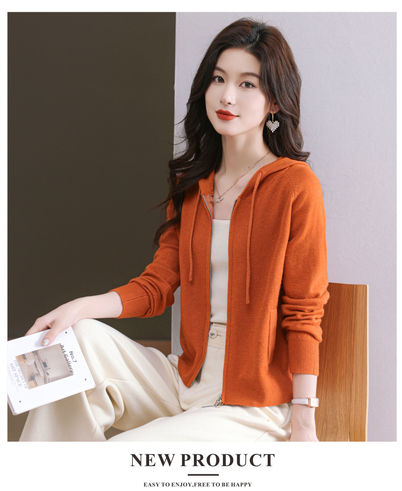 CC 101-96928早秋季宽松休闲连帽外搭针织衫