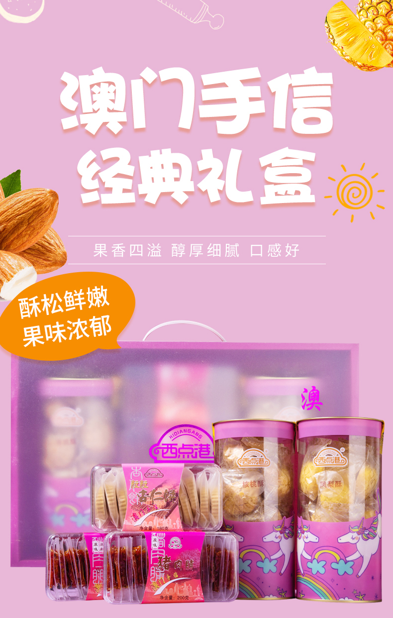 「澳门手信礼盒」西点港南北盛宴国潮礼盒 核桃酥/凤梨酥/雪花酥/鸡仔饼/猪肉脯/杏仁饼 糕点点心