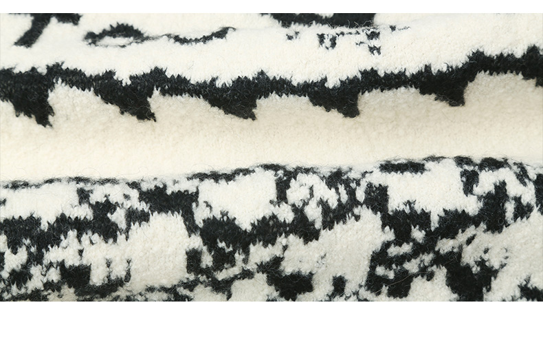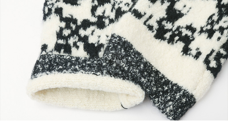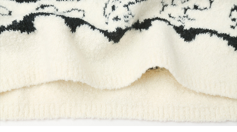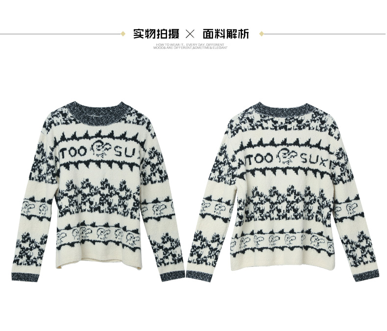 复古黑白撞色卡通提花针织毛衣 圆领宽松休闲趣味字母图案秋冬潮酷个性套头上衣