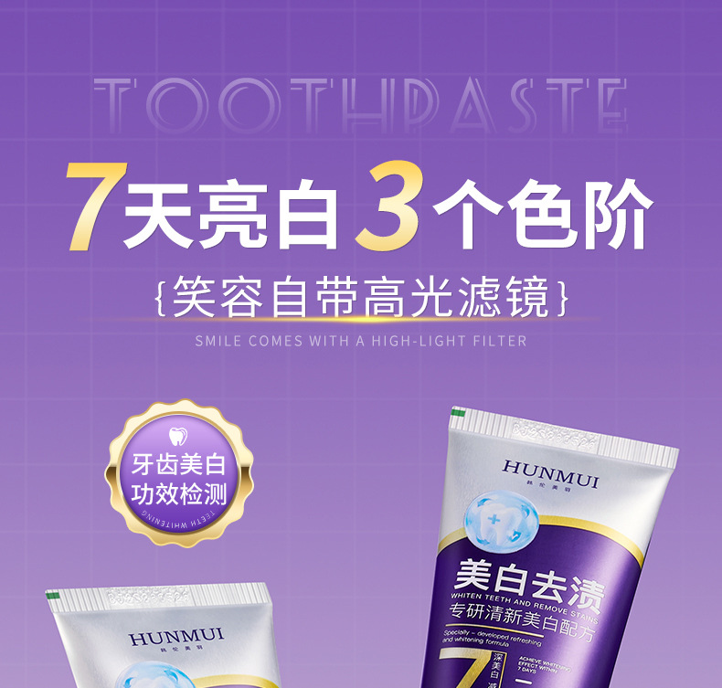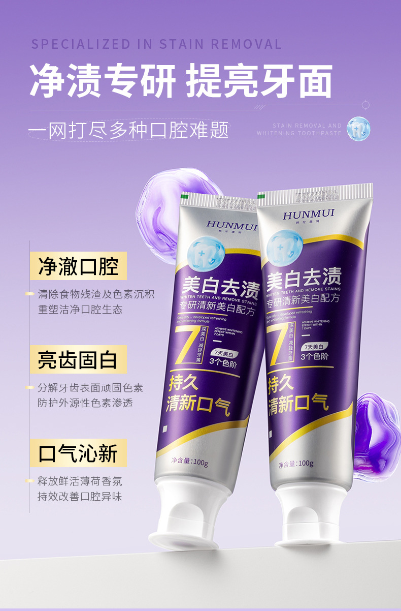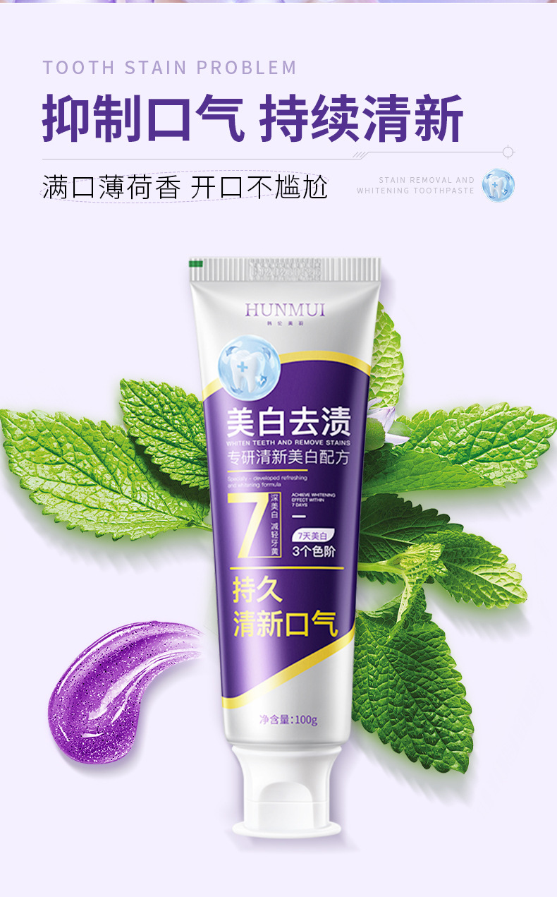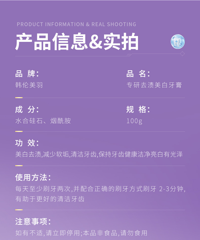 【亮白不酸牙,口气持久清爽】韩伦美羽专研去渍美白牙膏7天去黄爆珠去烟渍牙渍美白色修牙膏。xb