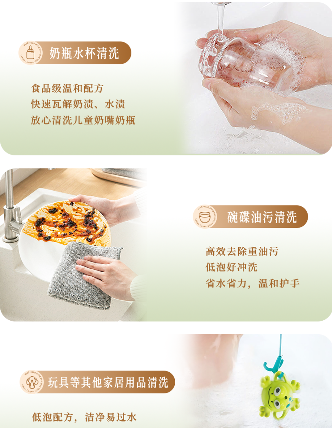 适用范围:用于碗碟、奶瓶、水杯等餐具类以及玩具等其他用品
