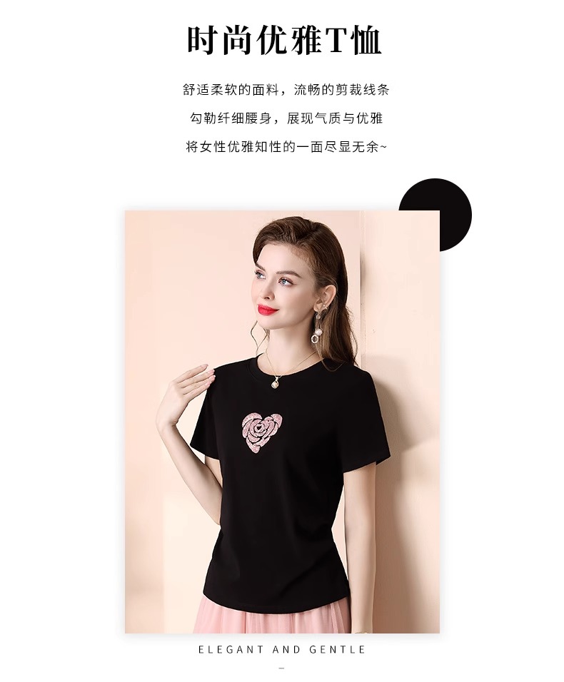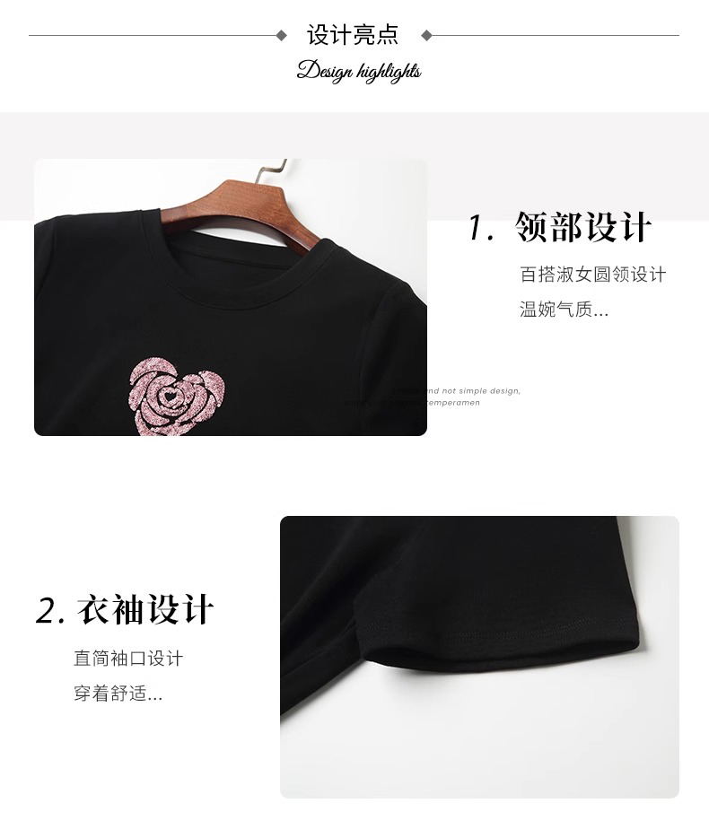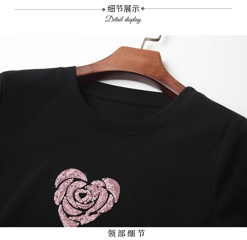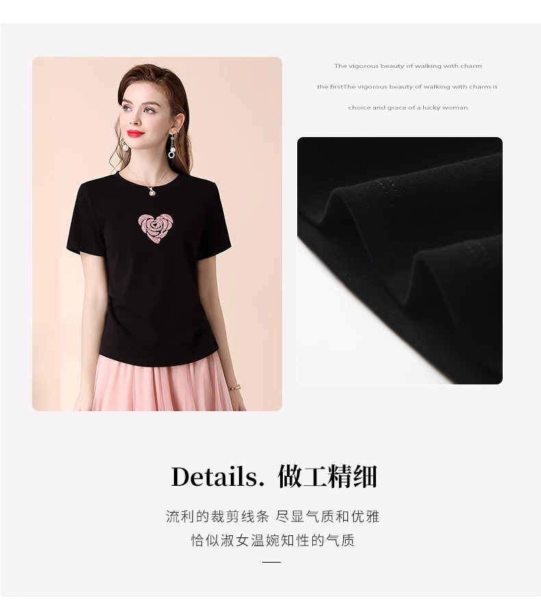 「自」全新升级【铂金会员100/天猫139/差价39】(02803)全新升级气质圆领短袖T恤女夏季2025新款设计感亮片百搭显瘦上衣