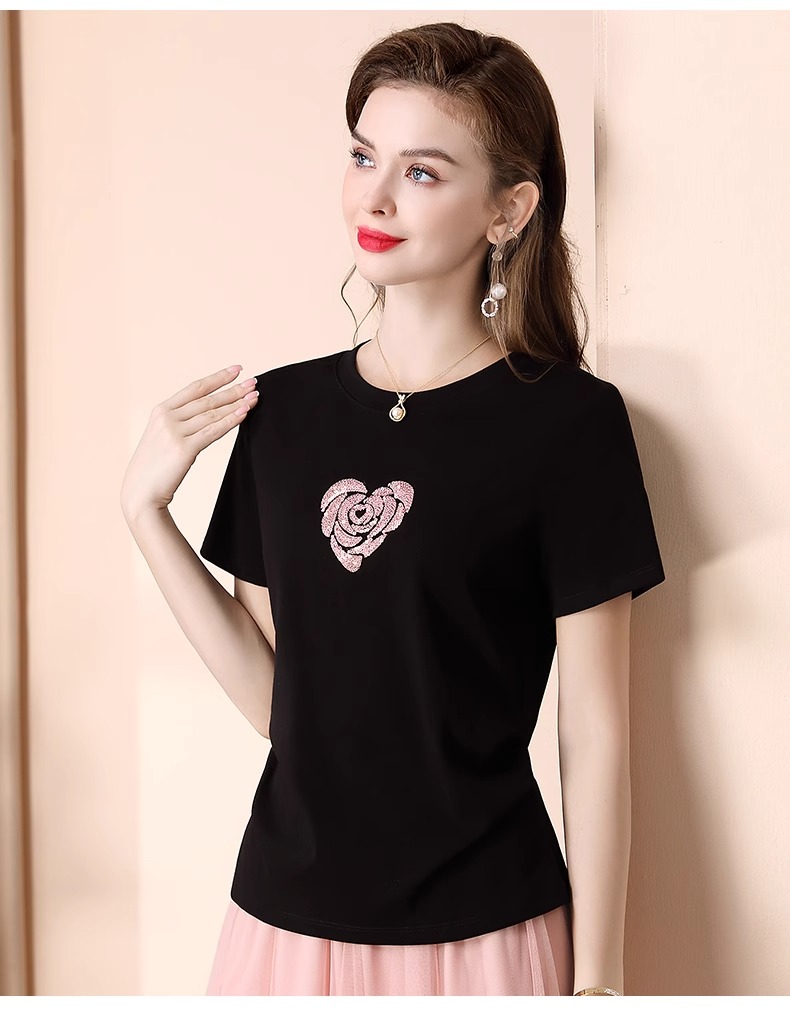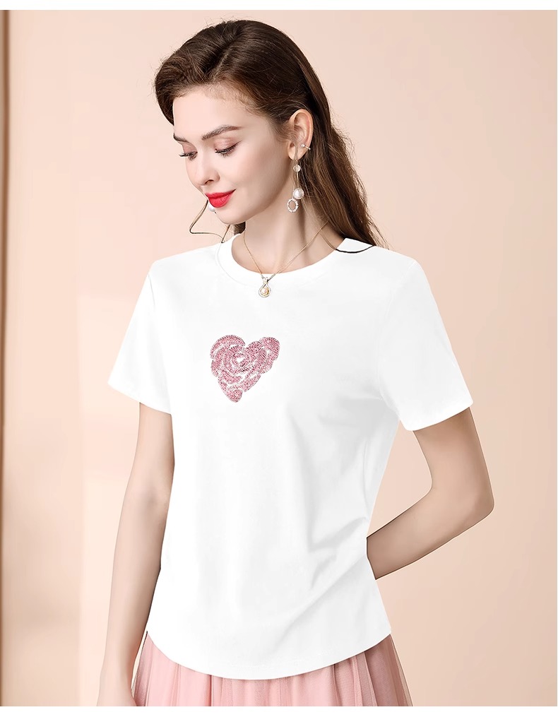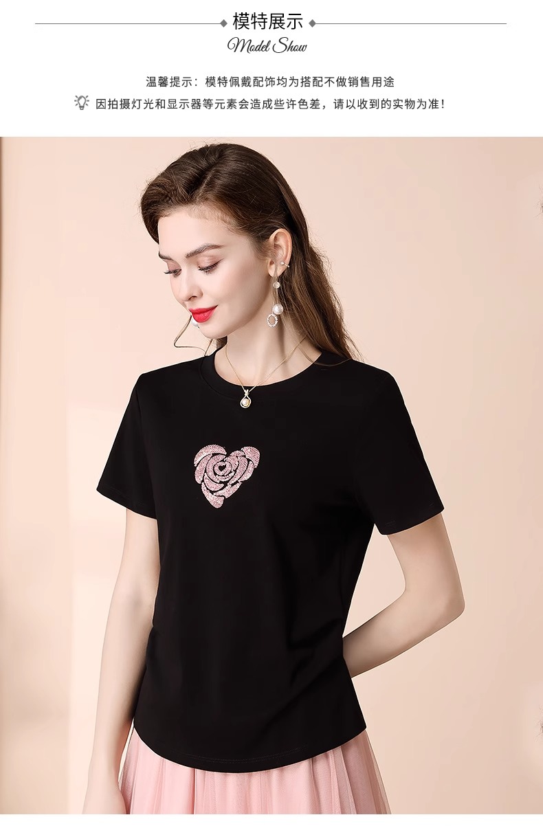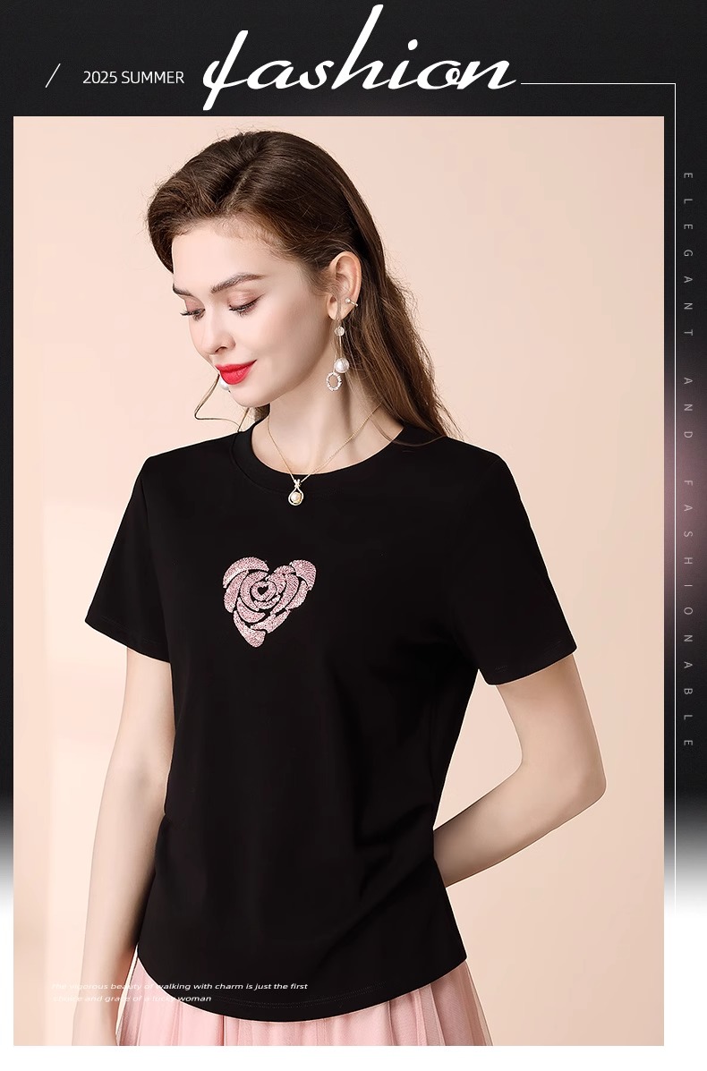 「自」全新升级【铂金会员100/天猫139/差价39】(02803)全新升级气质圆领短袖T恤女夏季2025新款设计感亮片百搭显瘦上衣