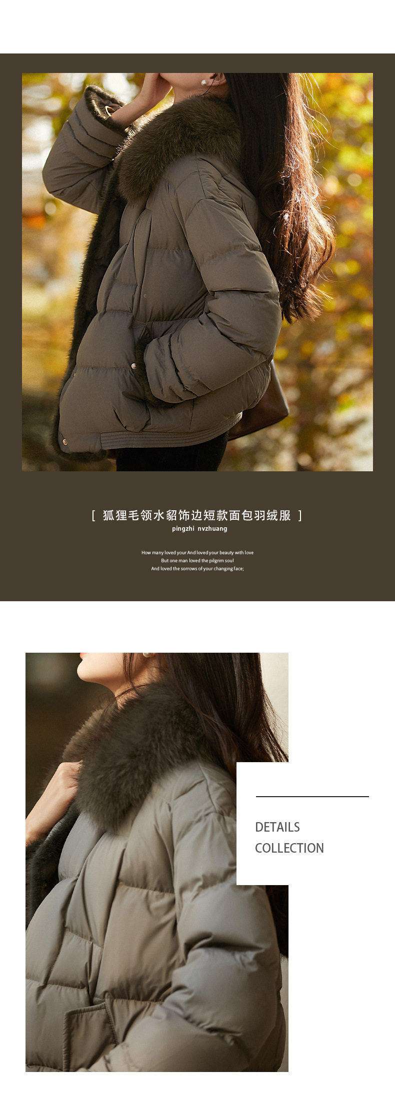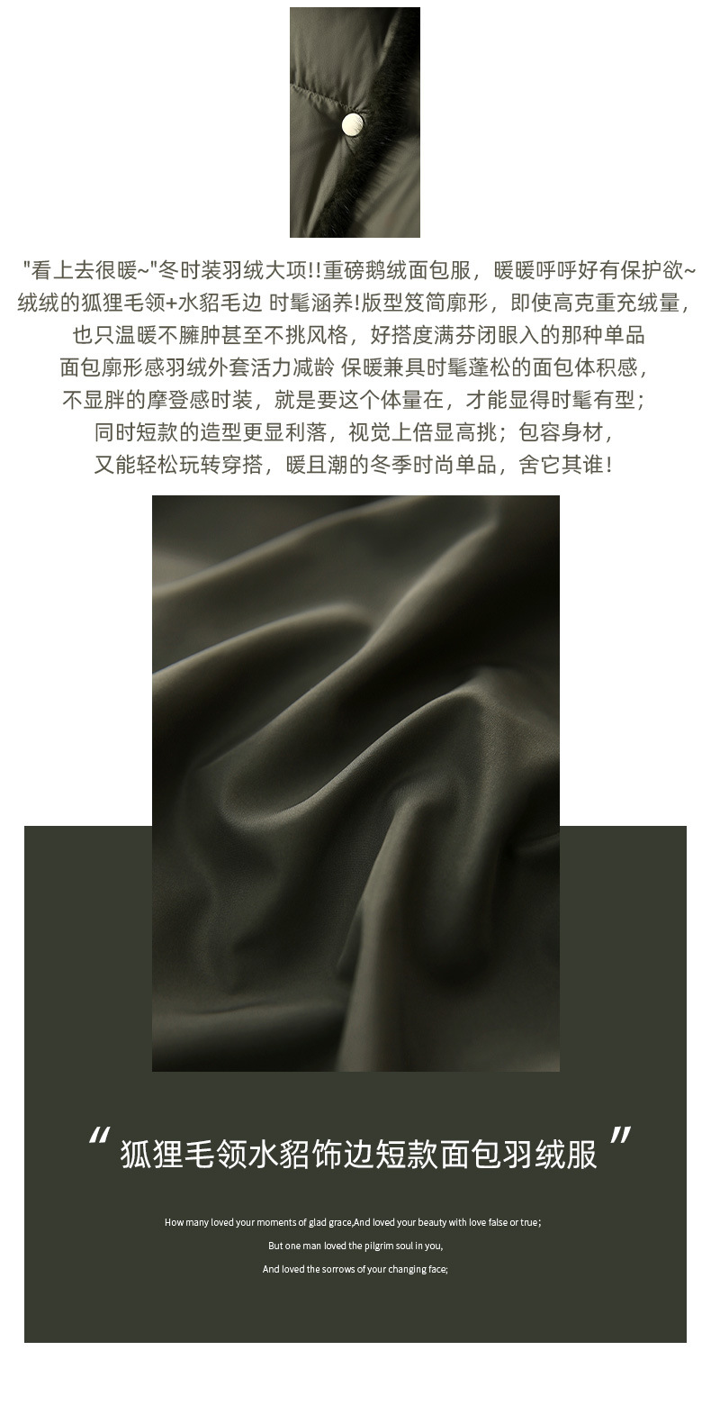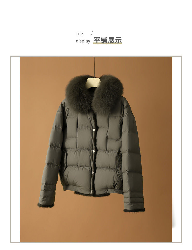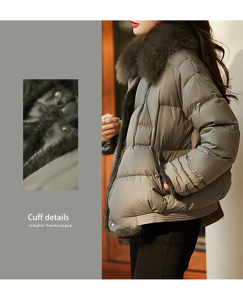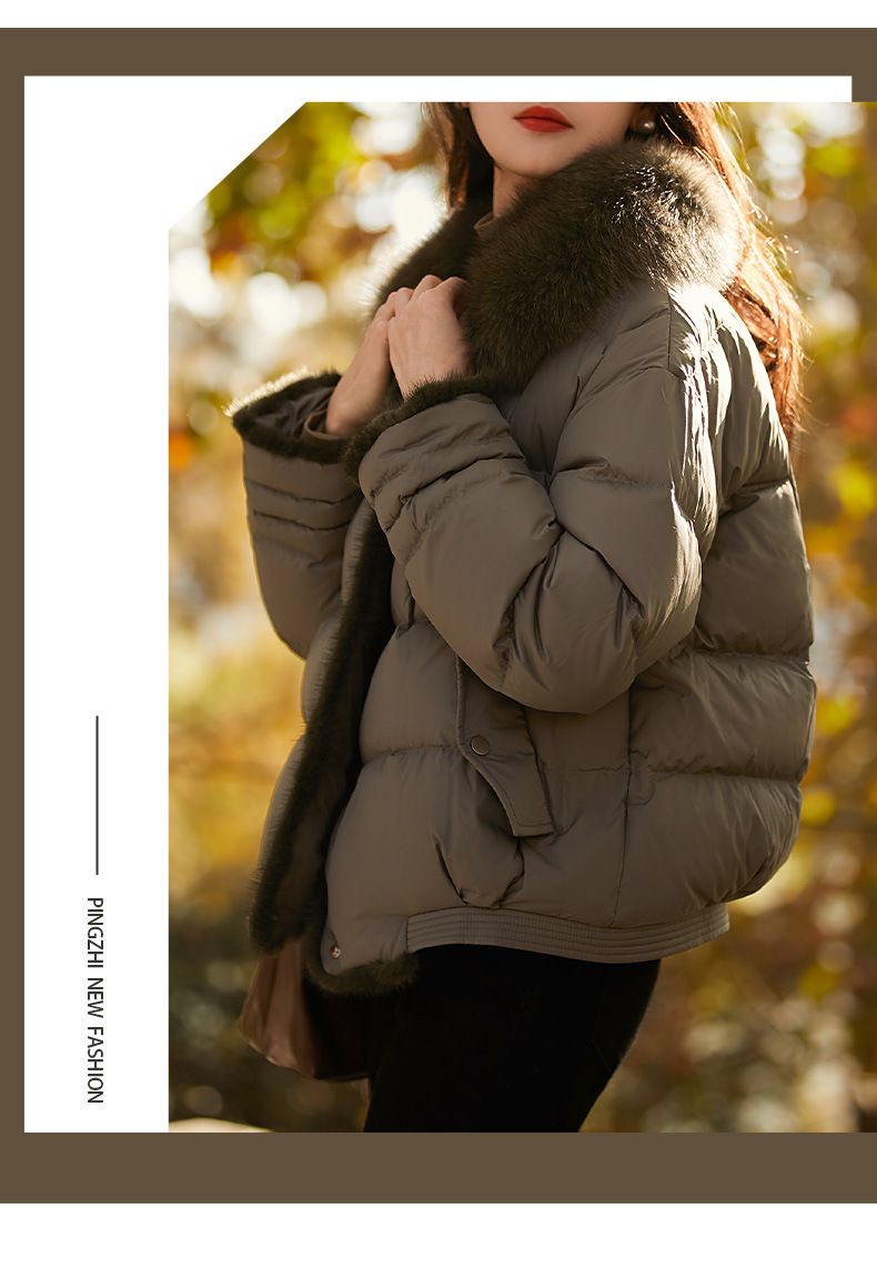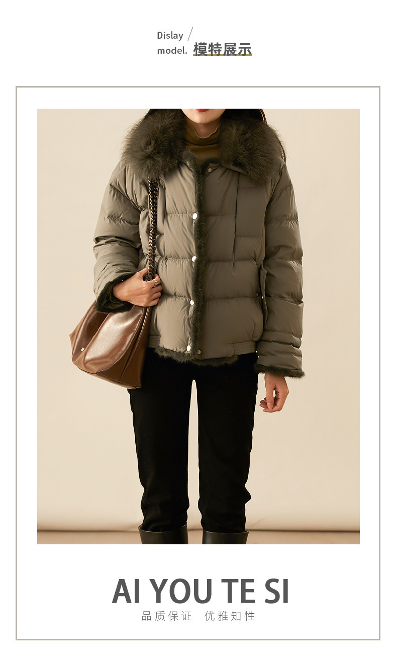 【高货ayts】全新升级【铂金会员882/天猫1199/差价317】(52045) 洛诗琳高端狐狸毛领水貂饰边95白鹅绒短款面包羽绒服