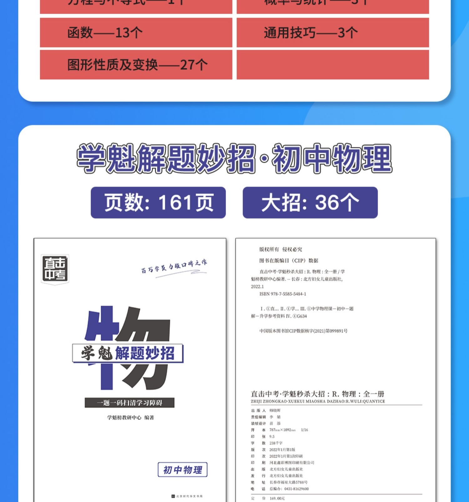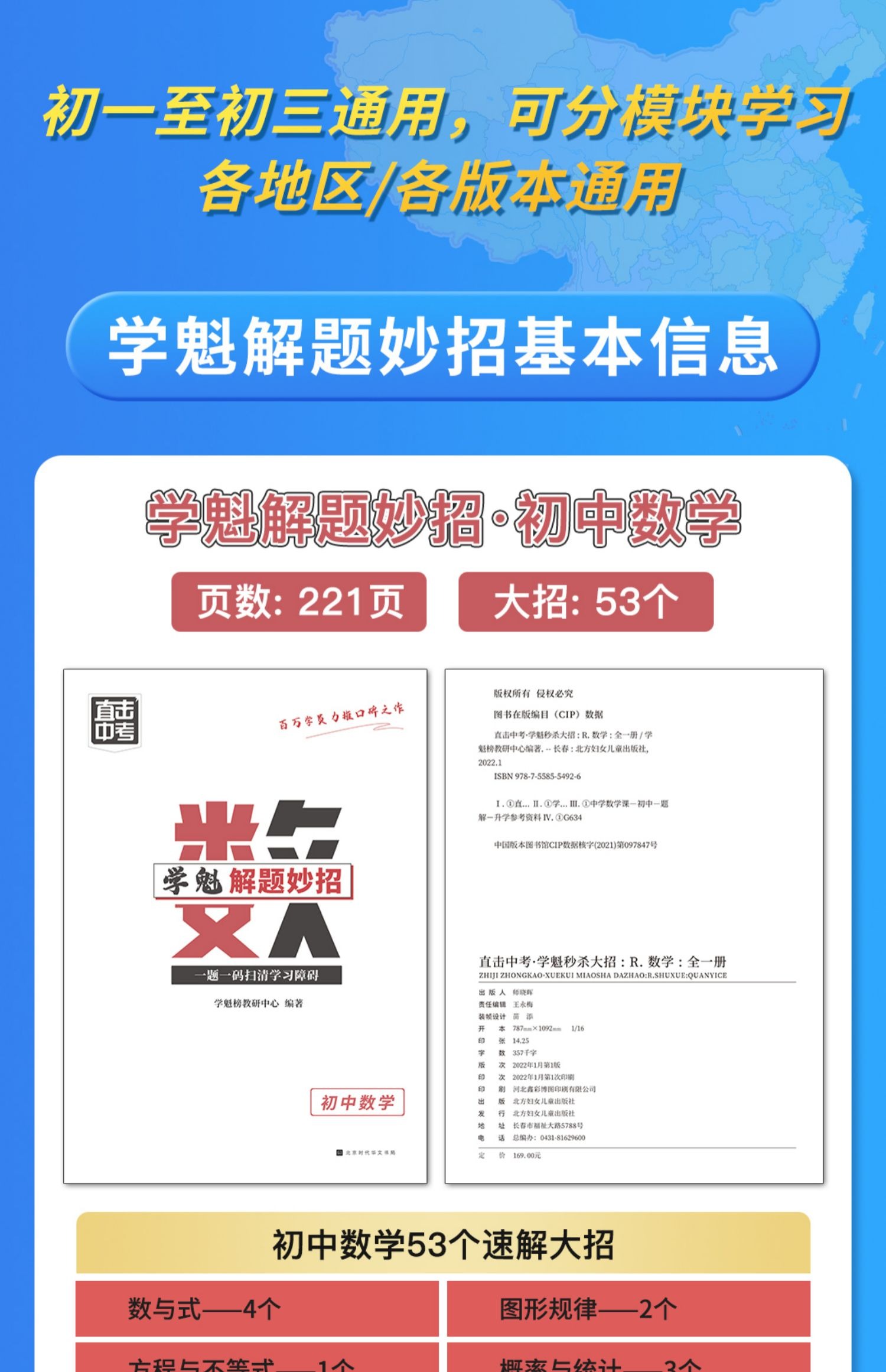 2023学魁解题妙招初中数学通用语文英语物理生物化学政治历史地理学魁榜直击中考总复习视频书