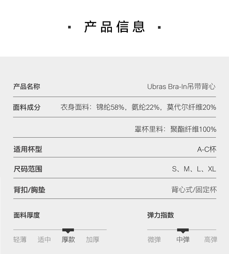 UbrasBra-In背心莫代尔舒适无痕内衣女背心打底带杯吊带上衣