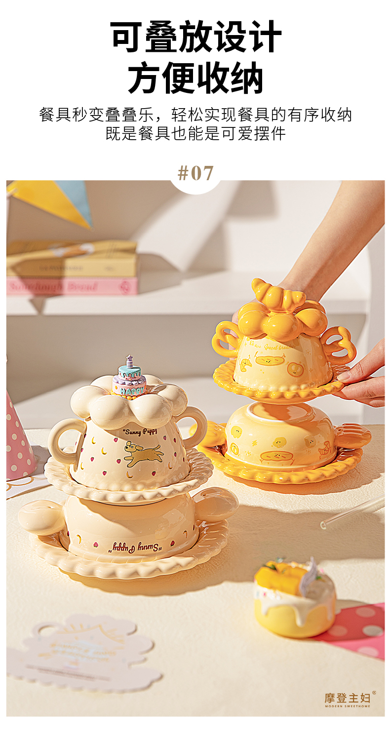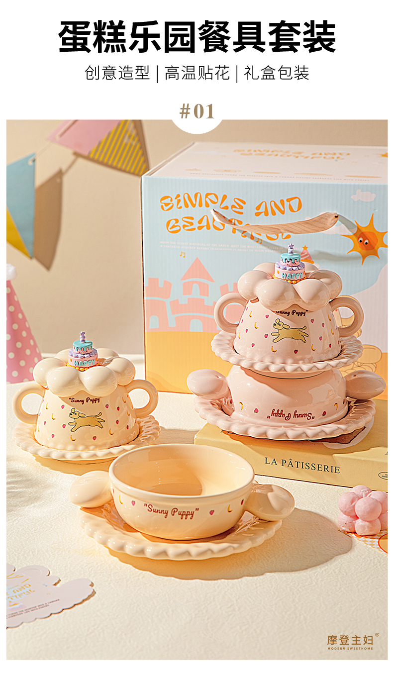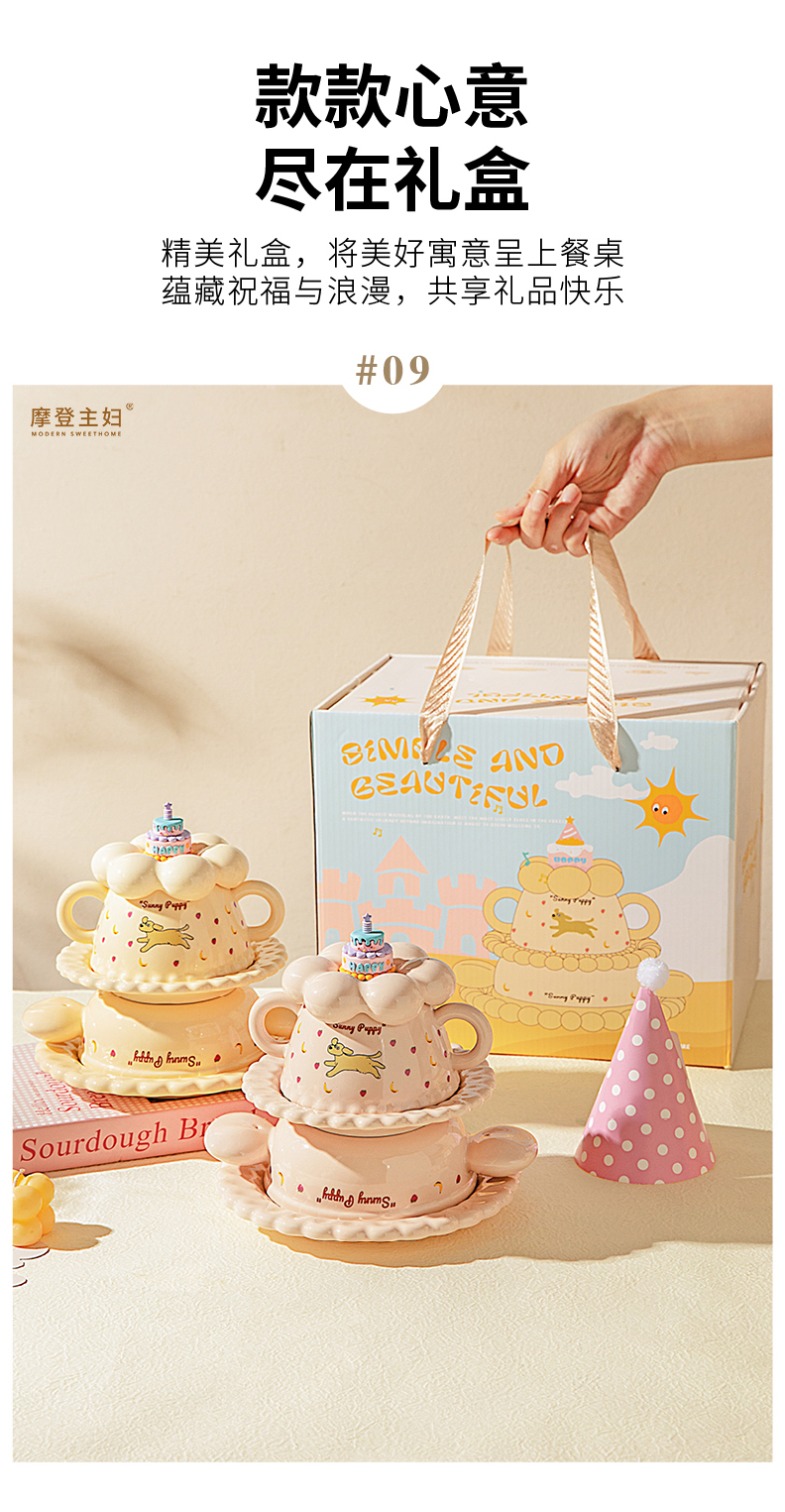 摩登主妇生日礼物女生送闺蜜儿童可爱一人食餐具套装碗碟杯子礼盒