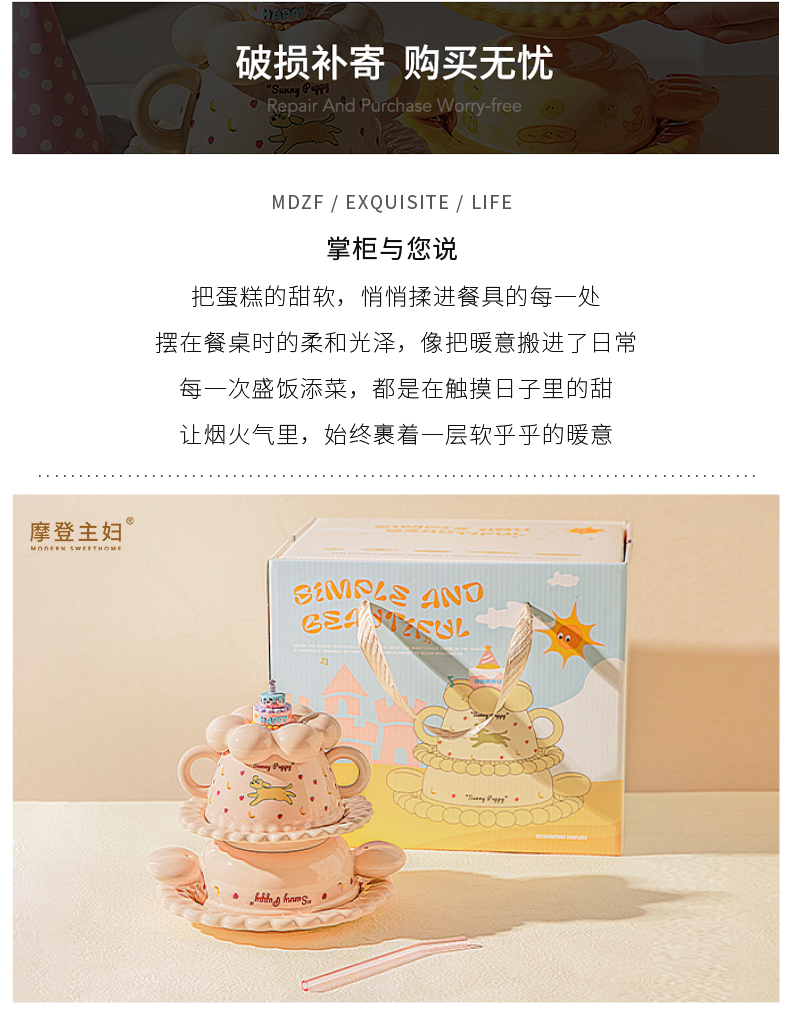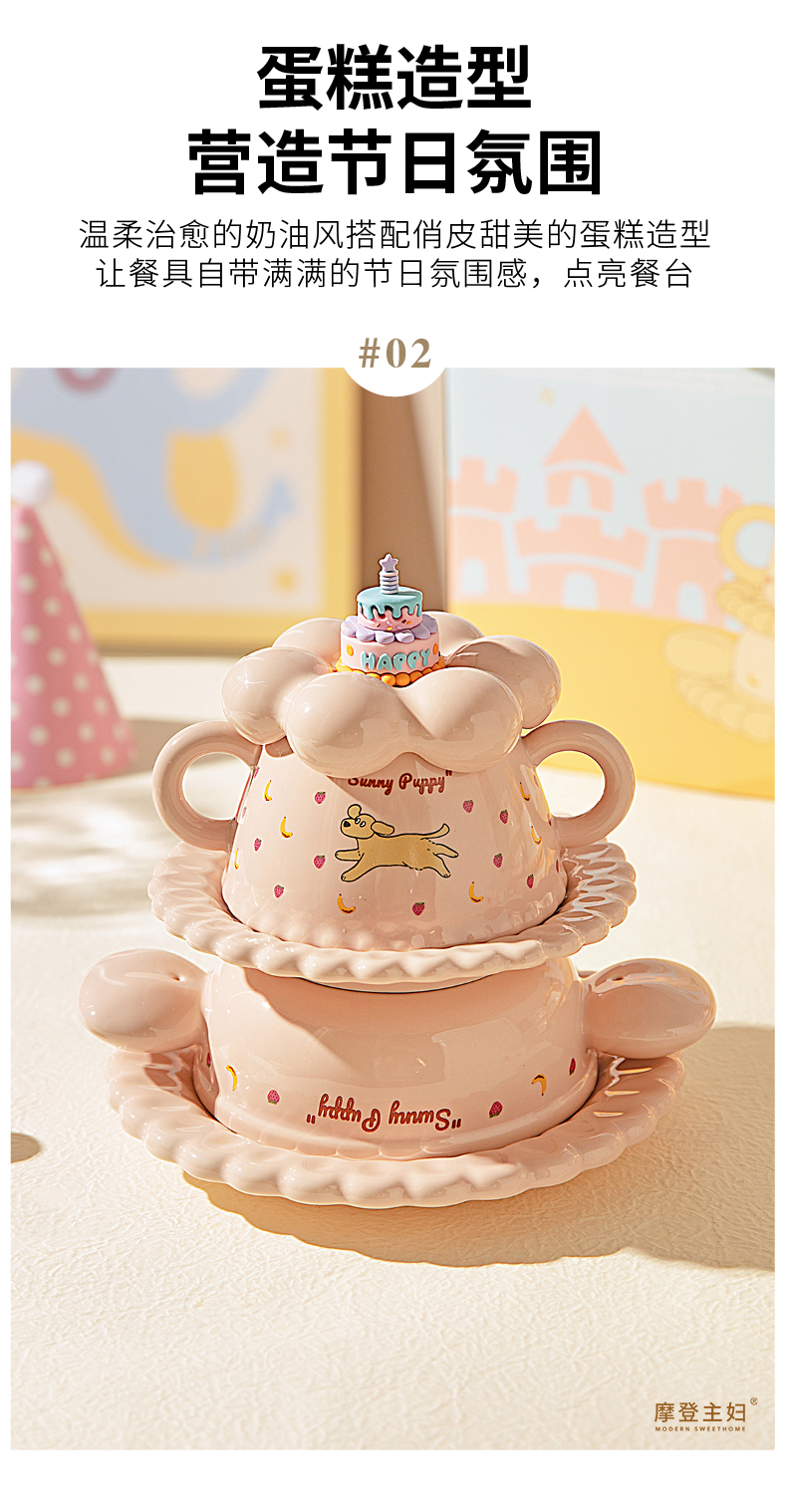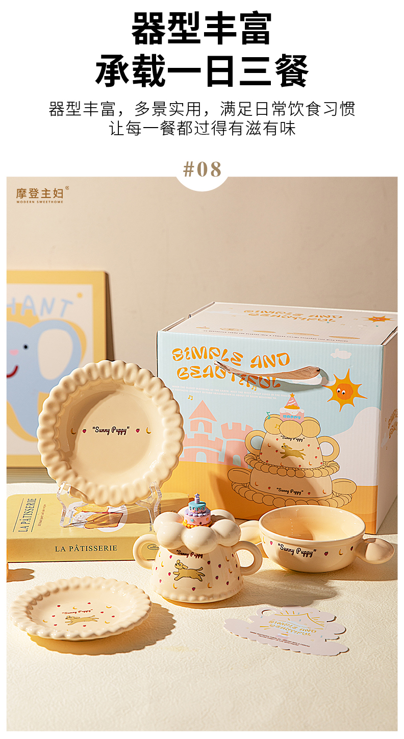 摩登主妇生日礼物女生送闺蜜儿童可爱一人食餐具套装碗碟杯子礼盒