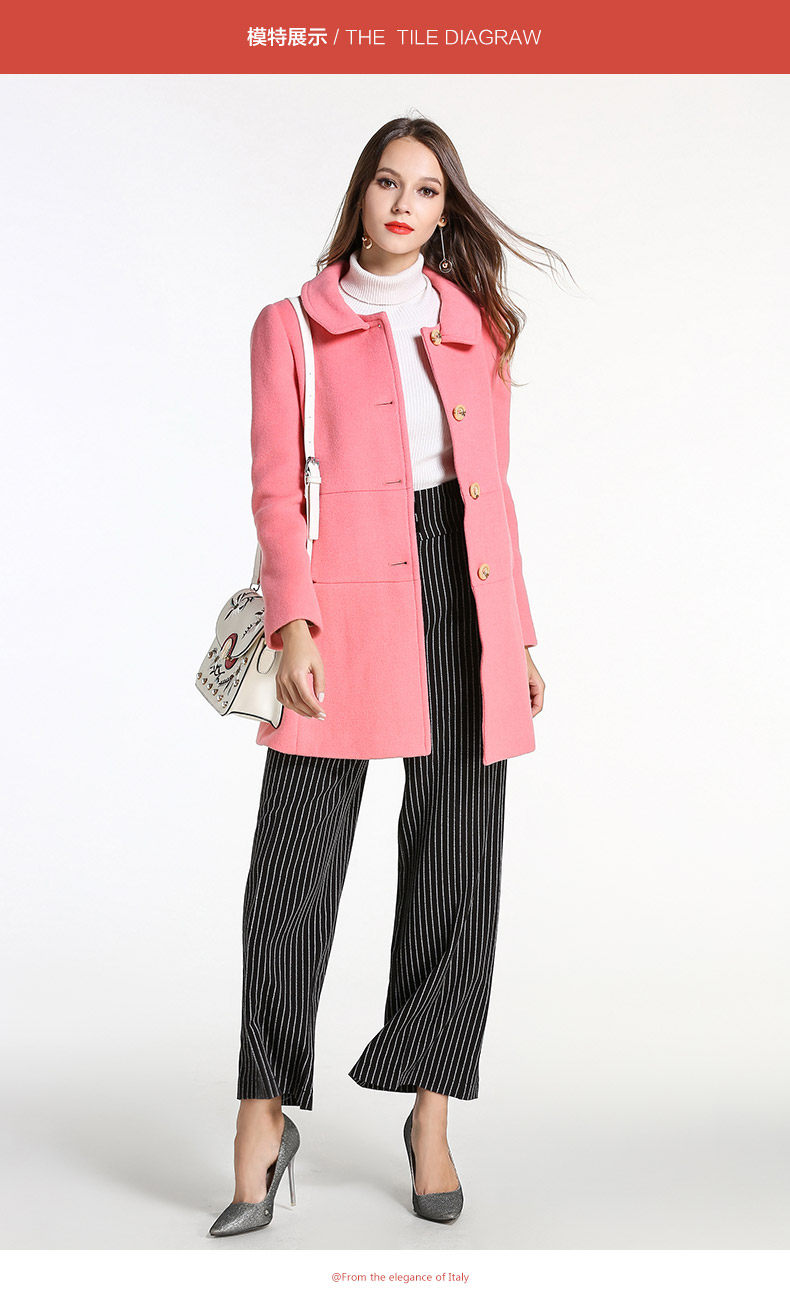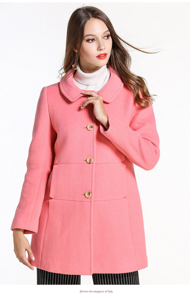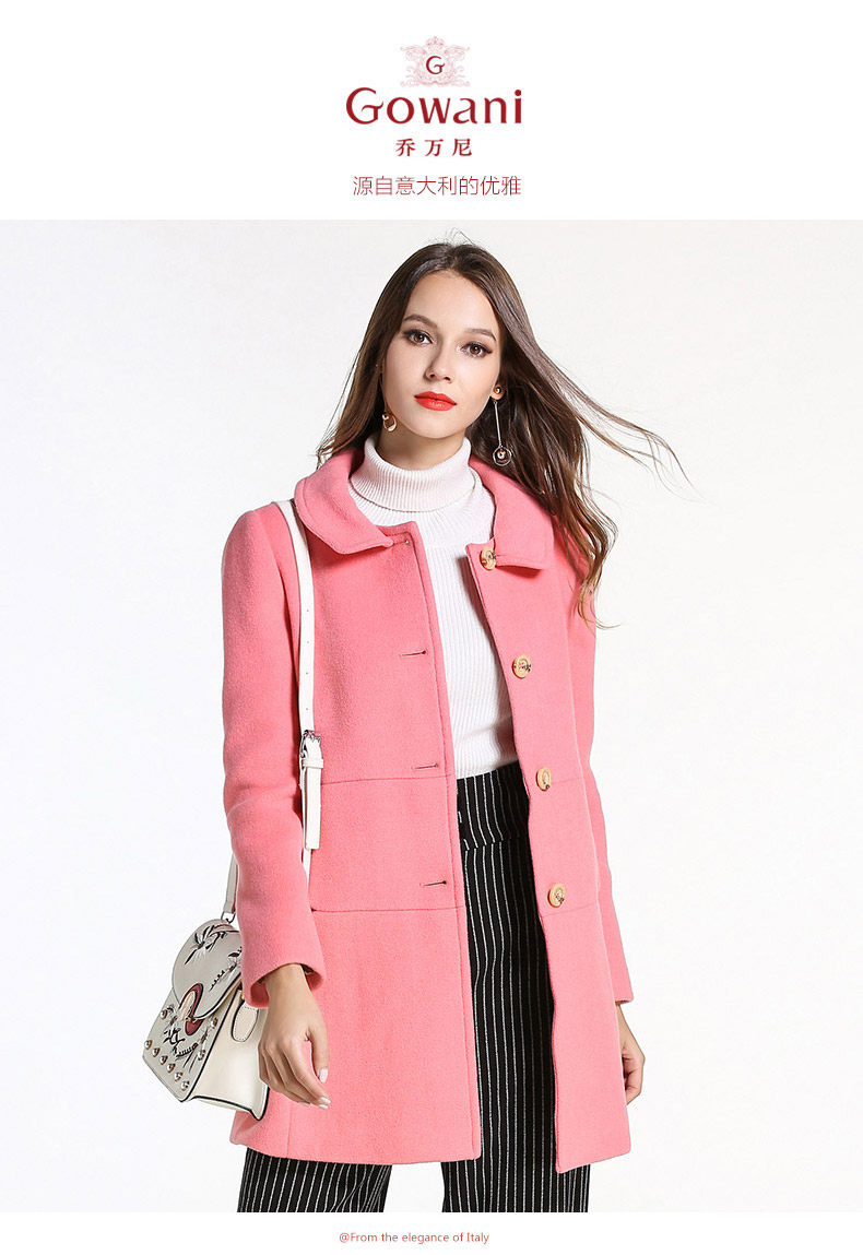 乔万尼冬羊毛呢子大衣简约时尚保暖修身中长款毛呢外套无毛领E144A876