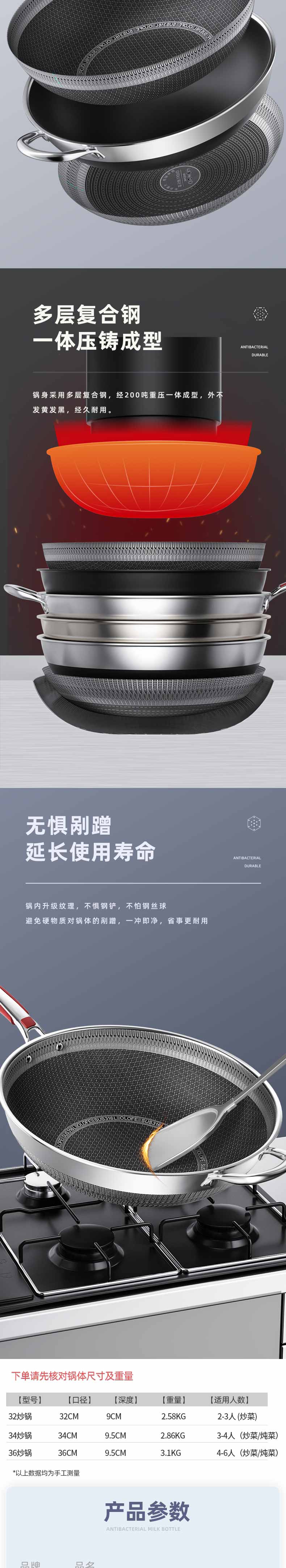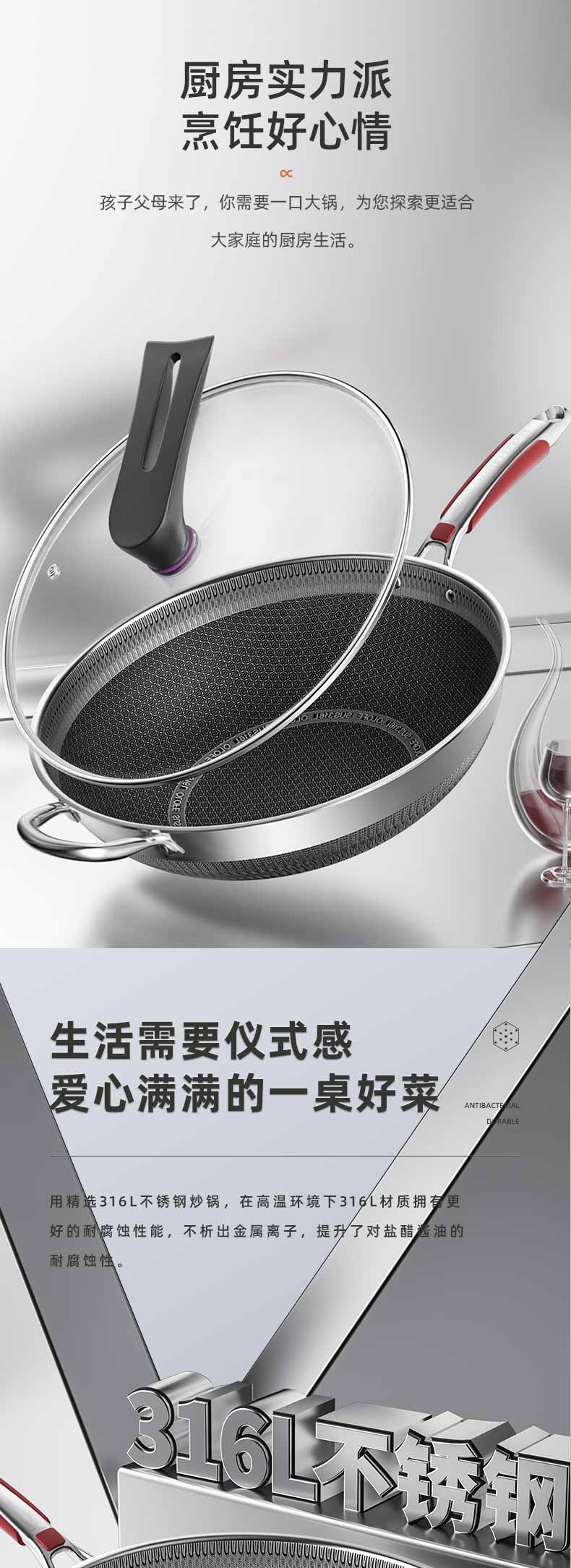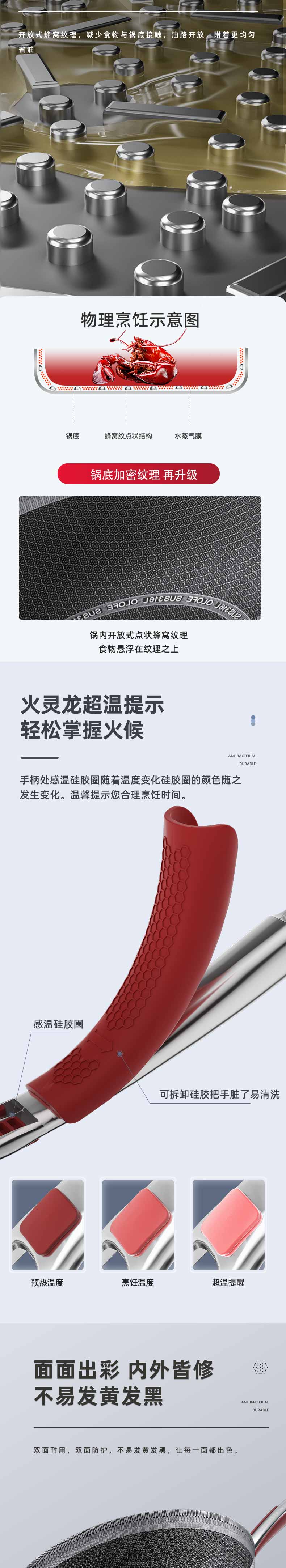 【官方正品保证】 欧乐菲第五代不粘锅不锈钢炒锅少油烟双面花纹蜂窝炒菜蜂巢锅具电磁炉天然气明火通用36cm OLOFC36B1