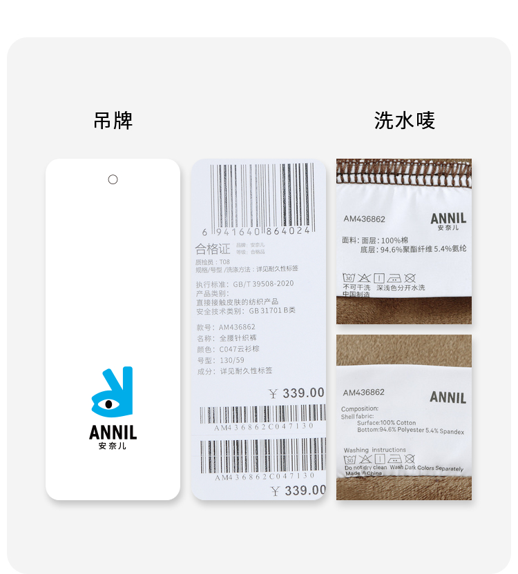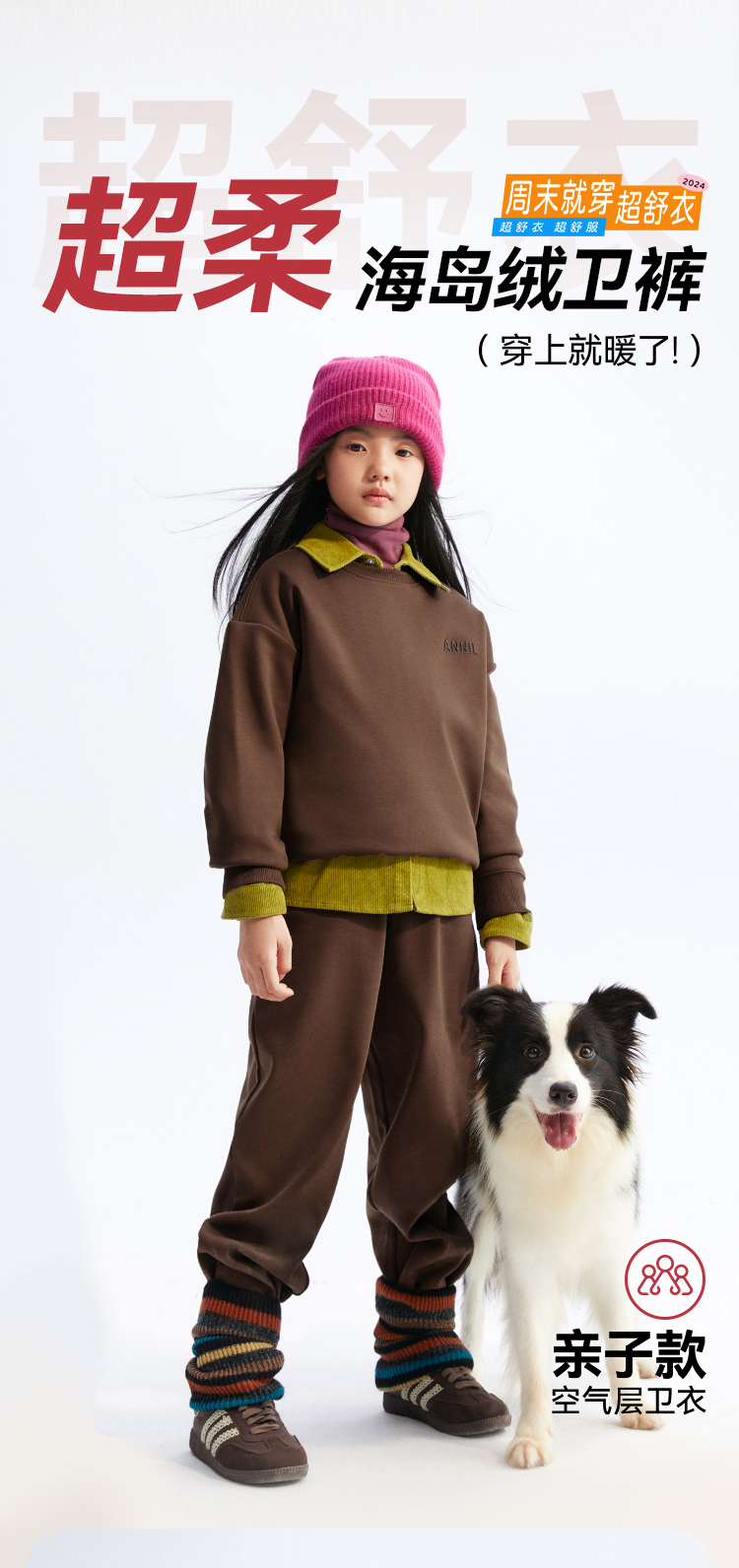 【超舒衣·海岛绒暖夹裤】男女童加绒保暖夹裤裤子新款安奈儿童装实体店同款AM436862