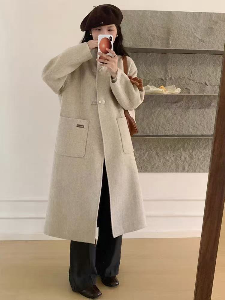 【轻奢双面尼】2522(100%澳洲超细羊毛)韩系牛角扣高级感双面尼羊毛大衣-喜出