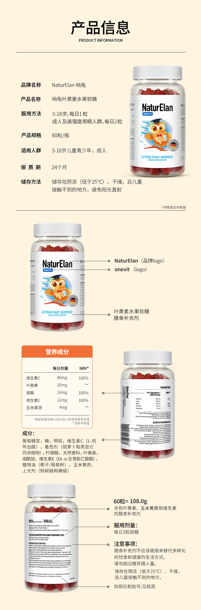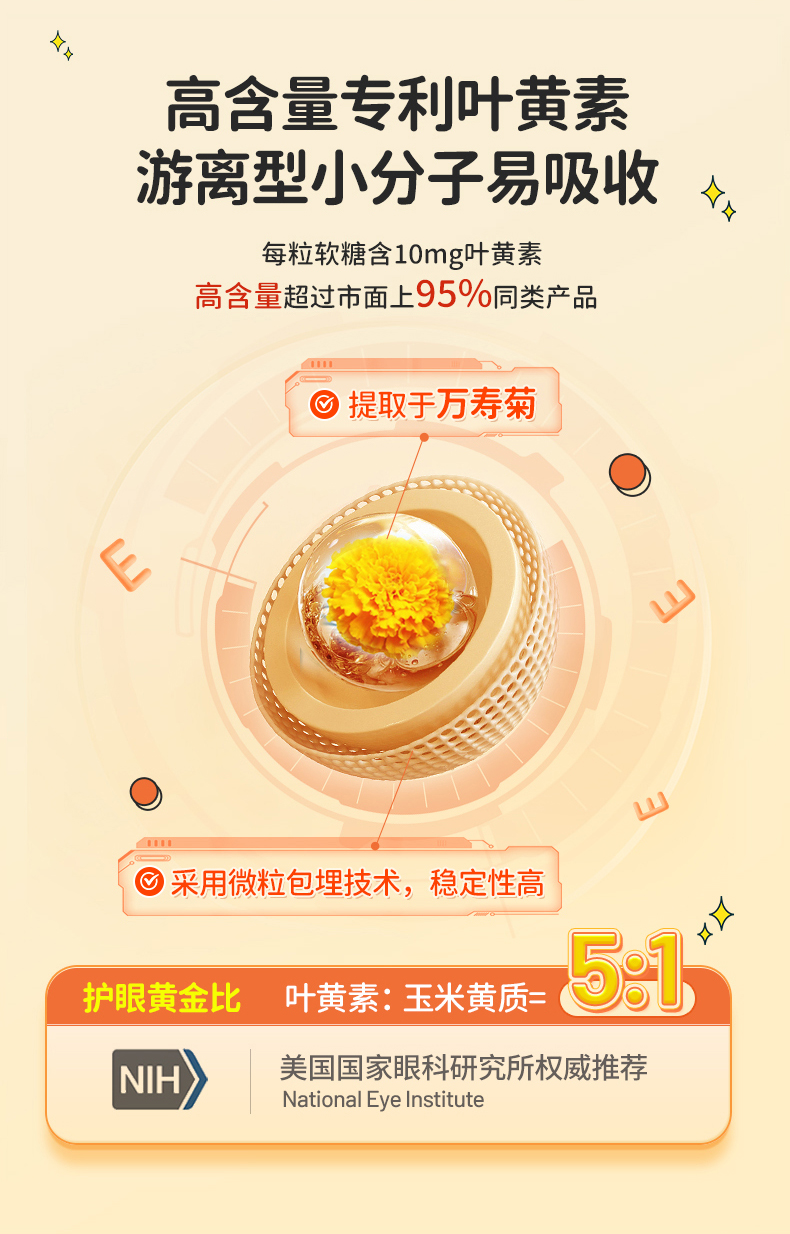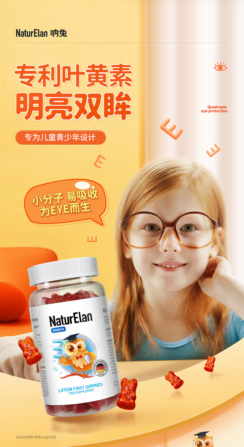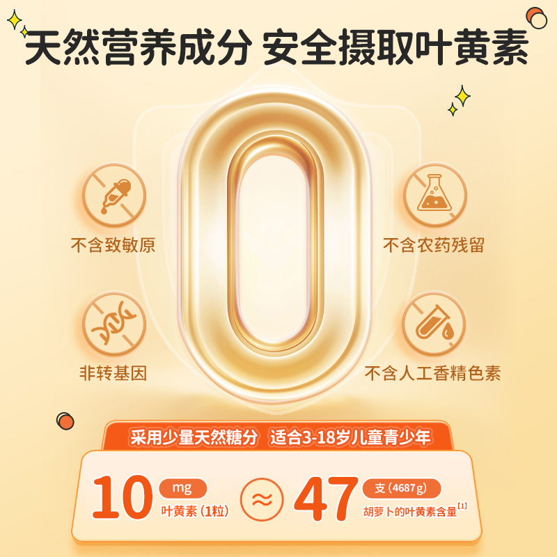 儿童经典款叶黄素软糖 60粒(3瓶送1袋儿童维生素8粒,6瓶送1盒 儿童DHA布丁软糖30粒)-nb【nj矩阵】
