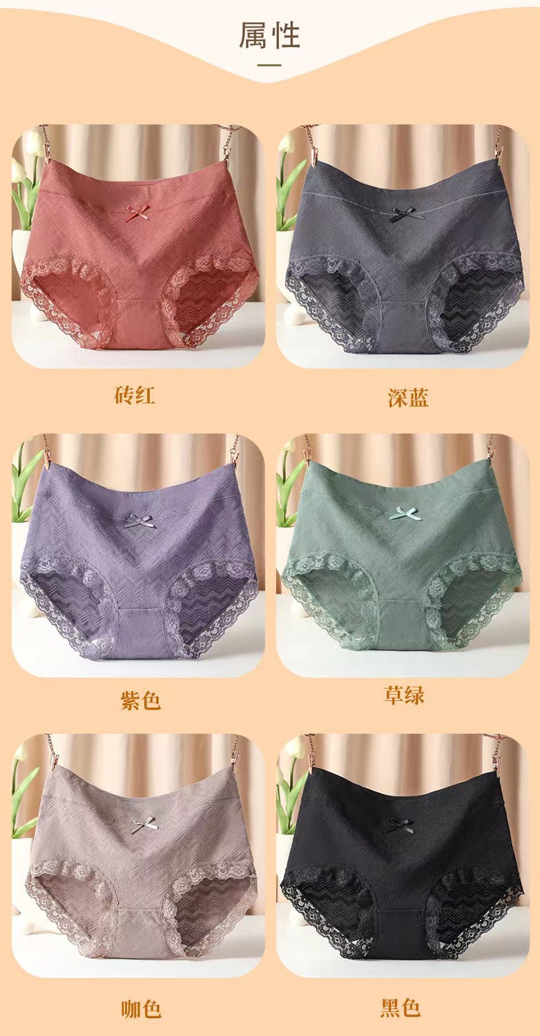 雀说 【5条】高腰棉质女士大码内裤抗菌裆包臀透气底裤蕾丝三角裤BY45 商品图0