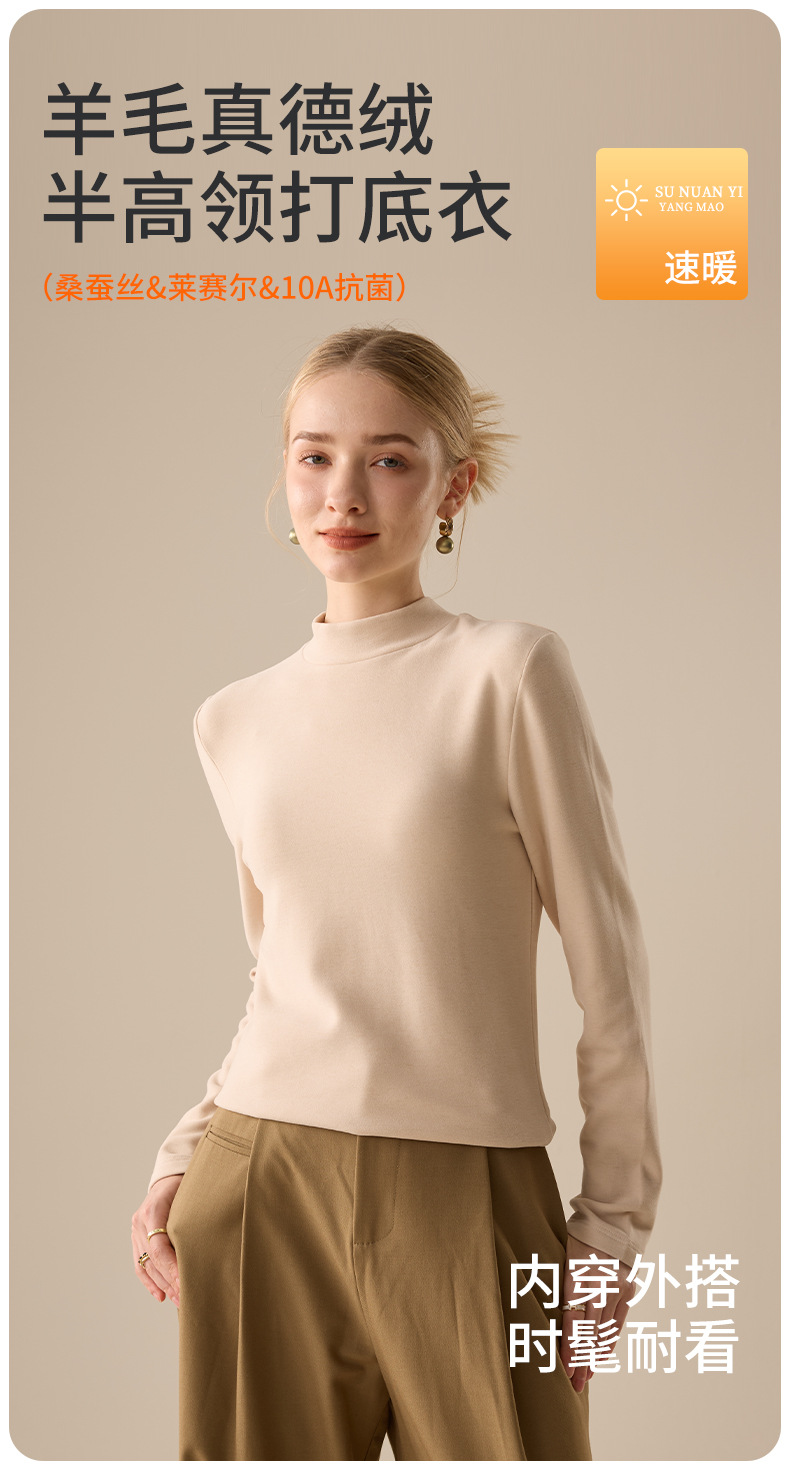 雀说 莱赛尔德绒羊毛打底衫女秋冬新款半高领上衣DRH5112 商品图4