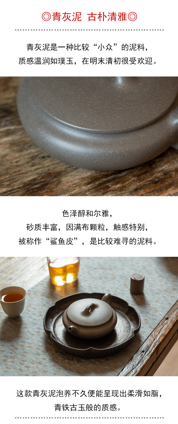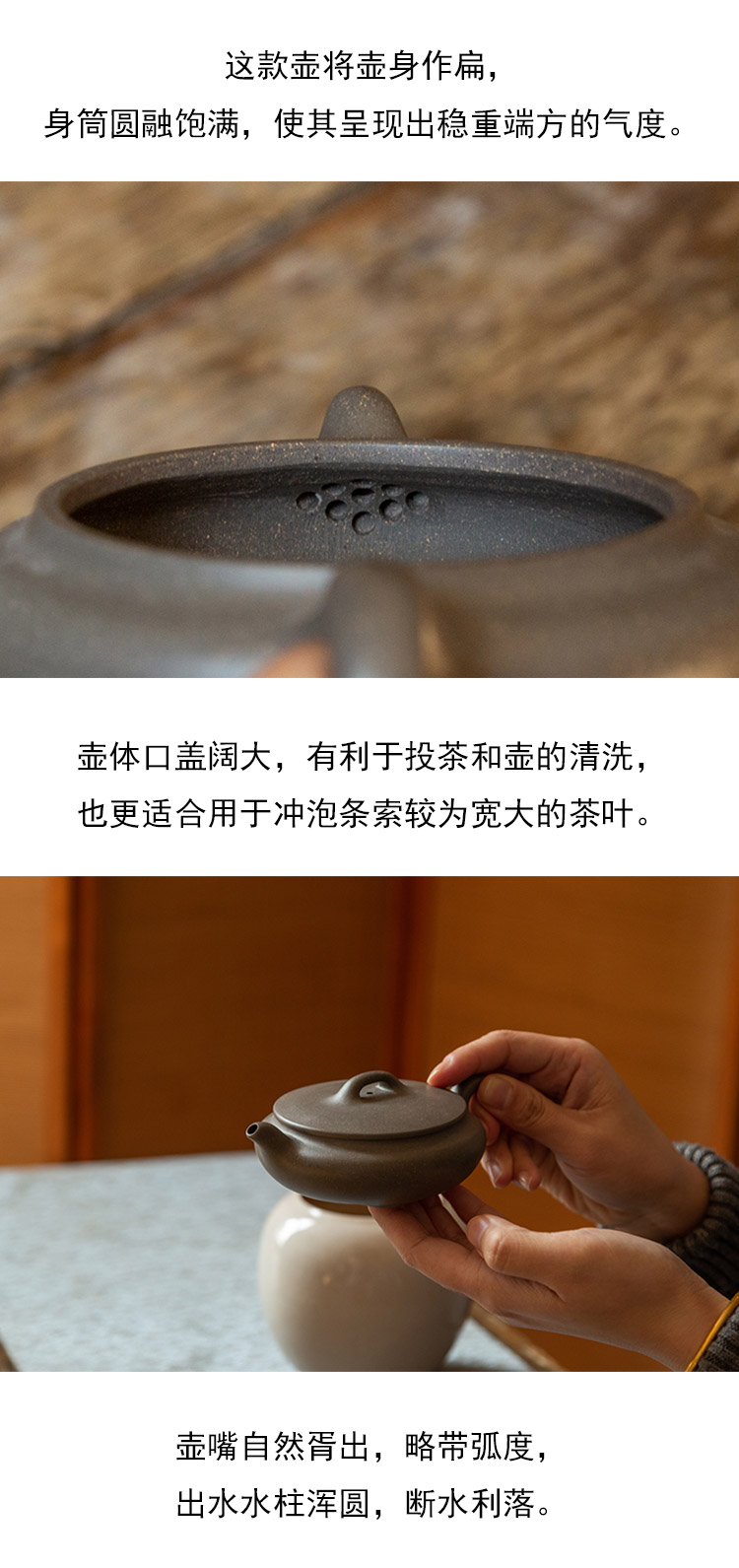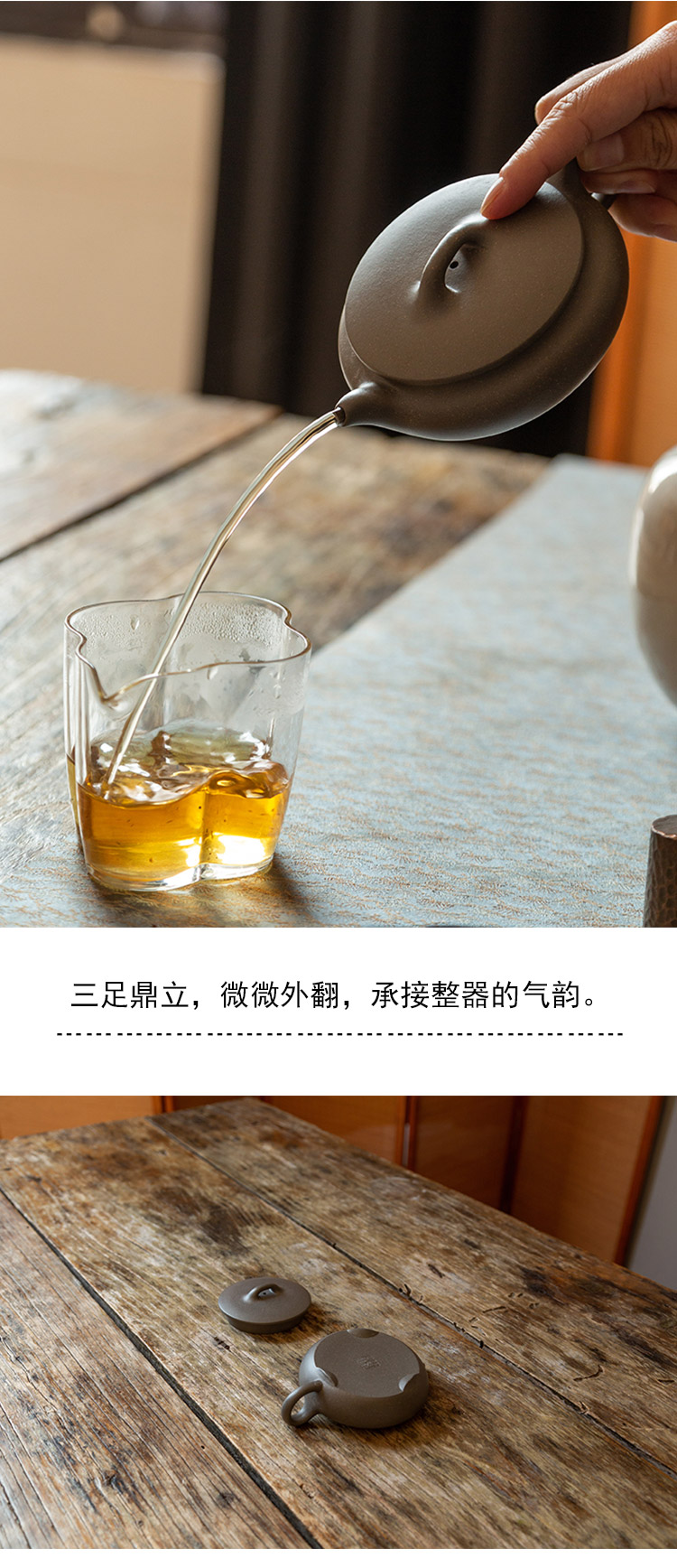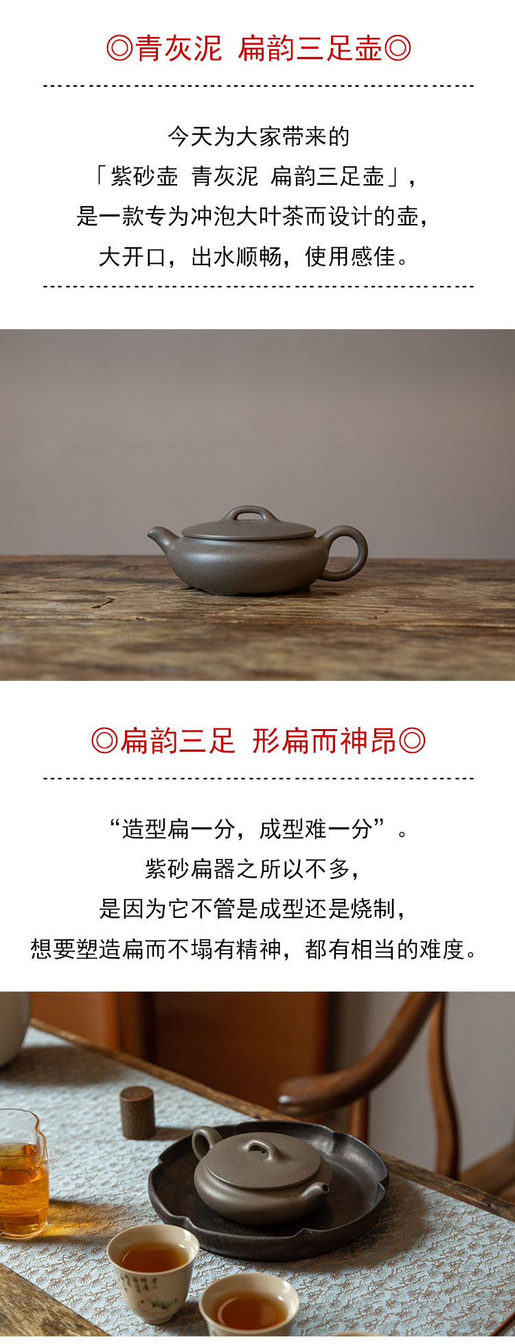 茶香记 紫砂壶 青灰泥 扁韵三足壶 实用设计 小众泥料 易泡养