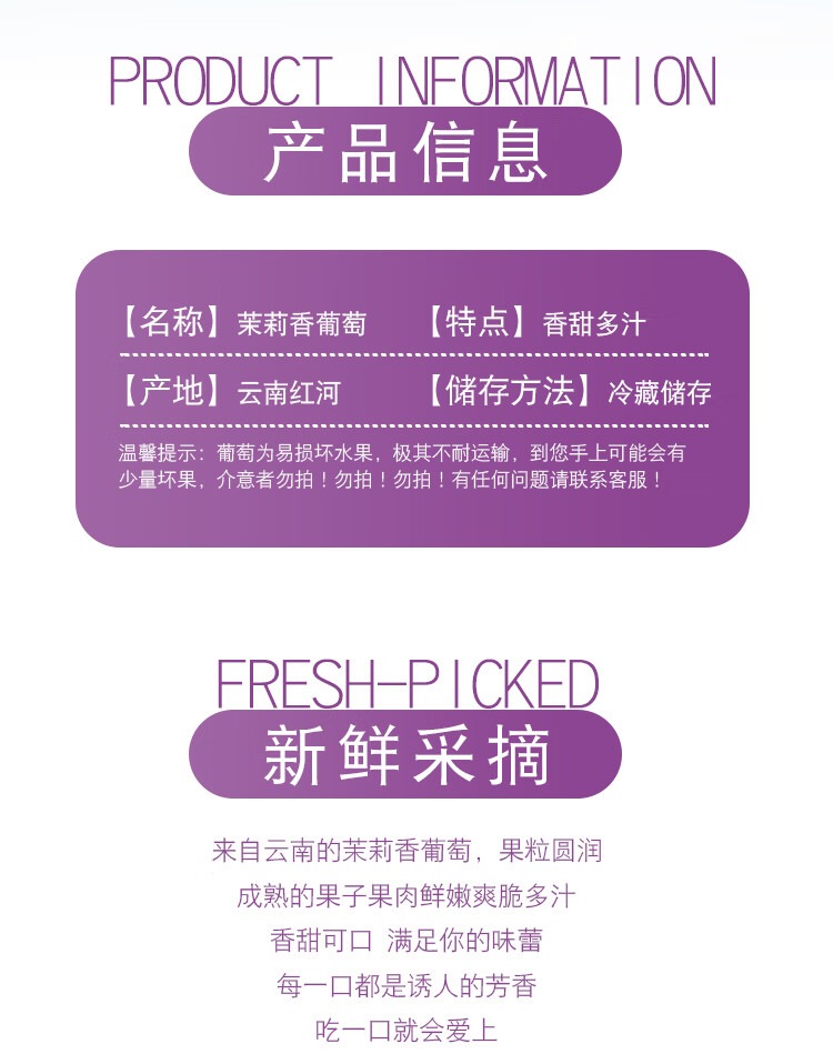 云南茉莉香无核葡萄 颗粒饱满 皮薄无核 鲜嫩多汁 香甜可口