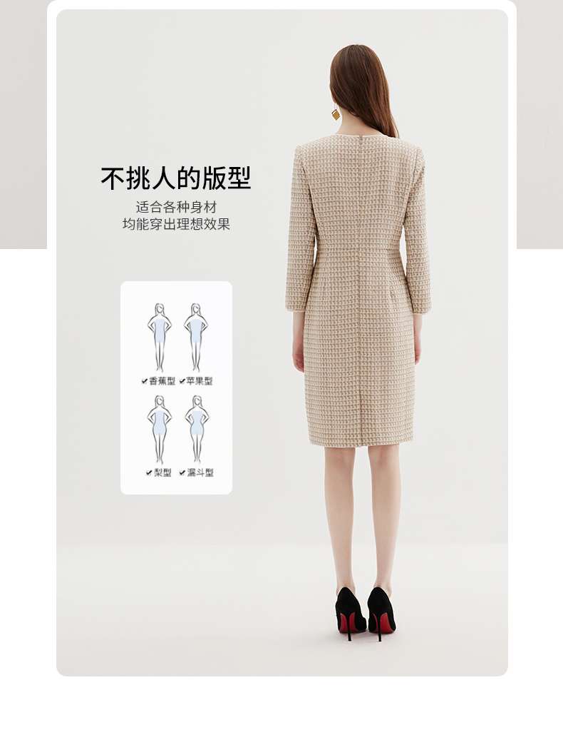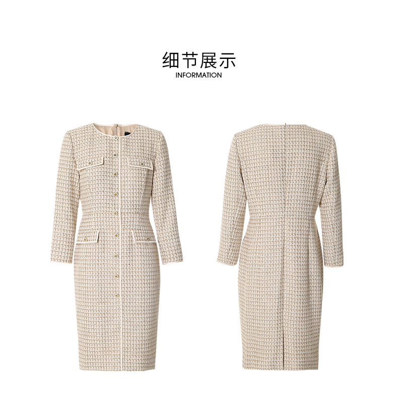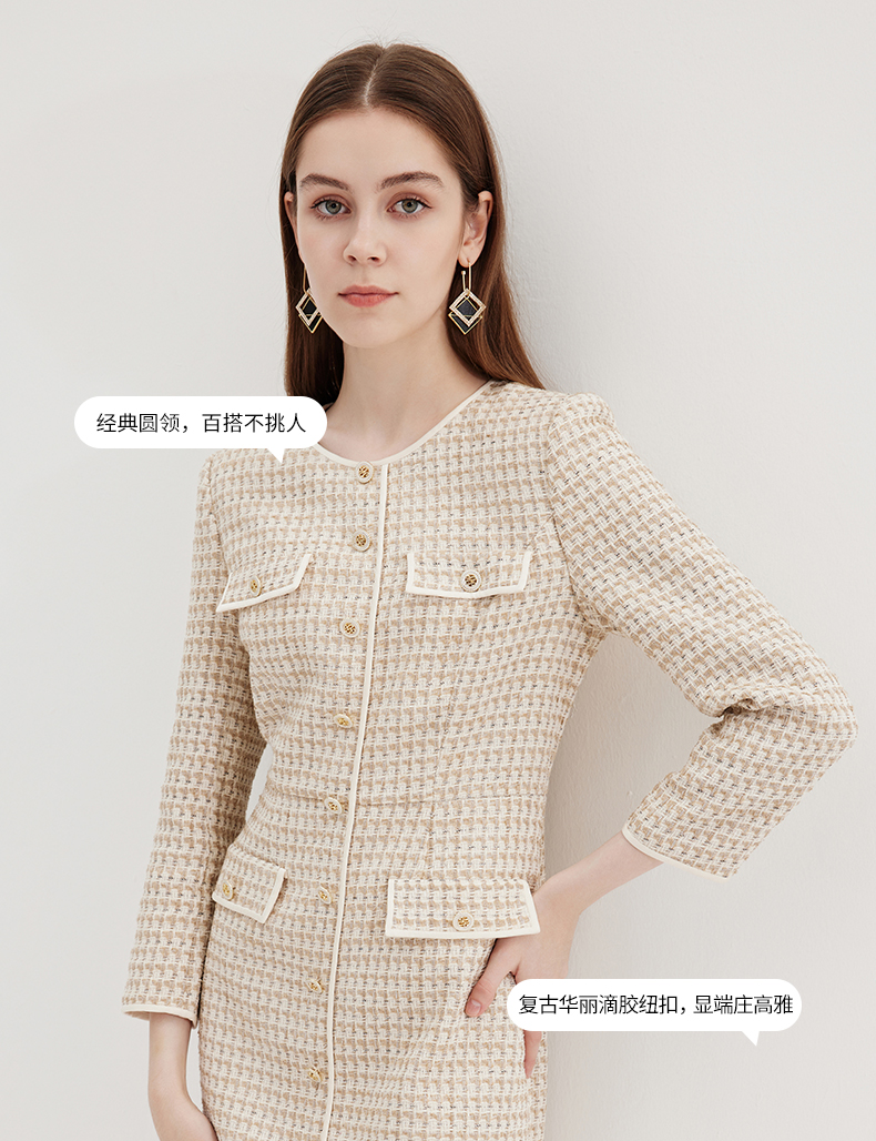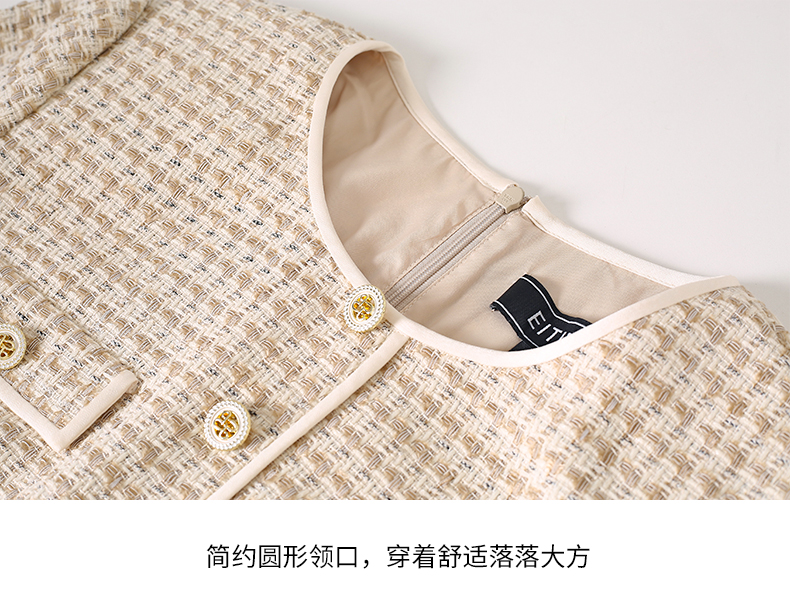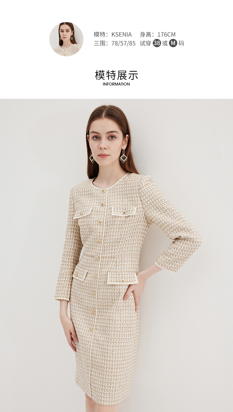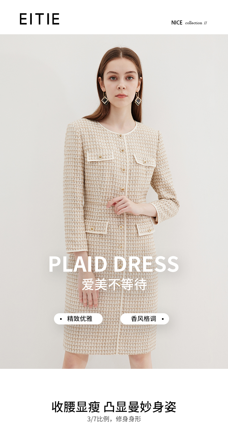 EITIE爱特爱冬季新款粗花呢气质圆领修身高腰显瘦时尚格子连衣裙7207933
