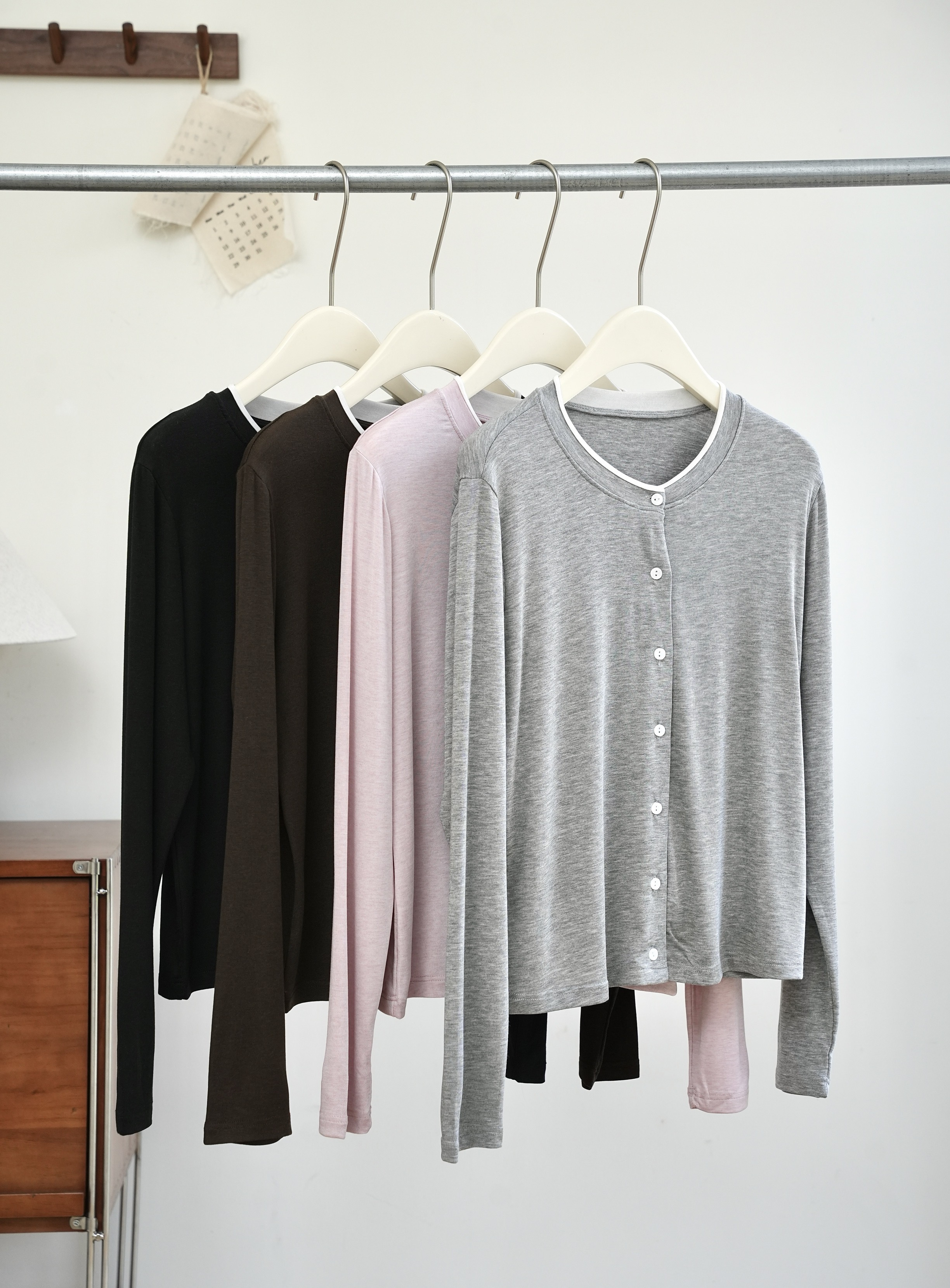 「显瘦纸片人」MIU系法式假两件圆领撞色开衫,进口莱赛尔醋纤美利奴羊毛面料,触感亲肤,4色任选,通勤休闲都适配长裤/长裙/短裤/短裙随便搭