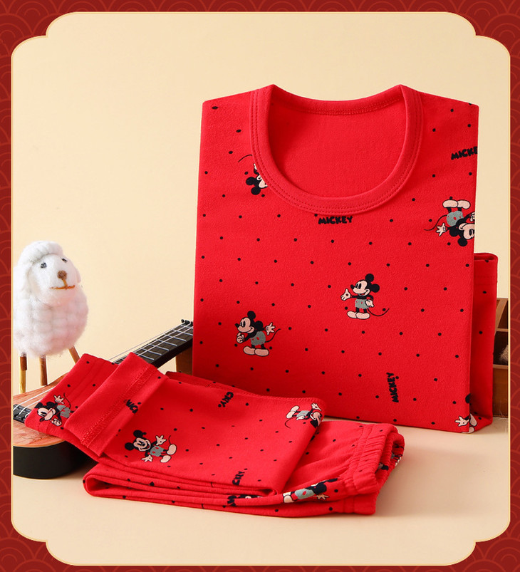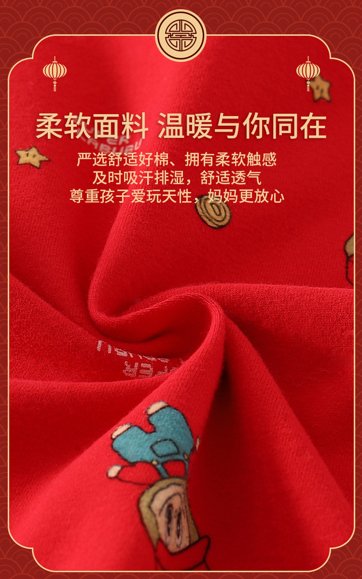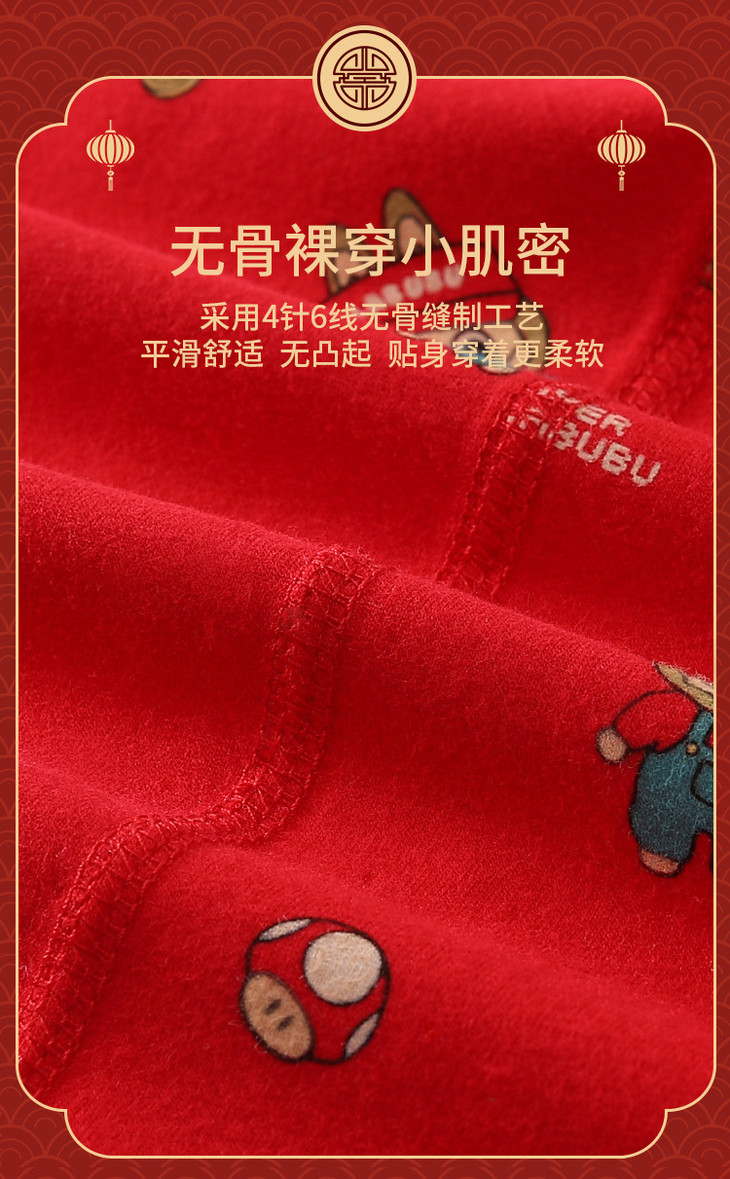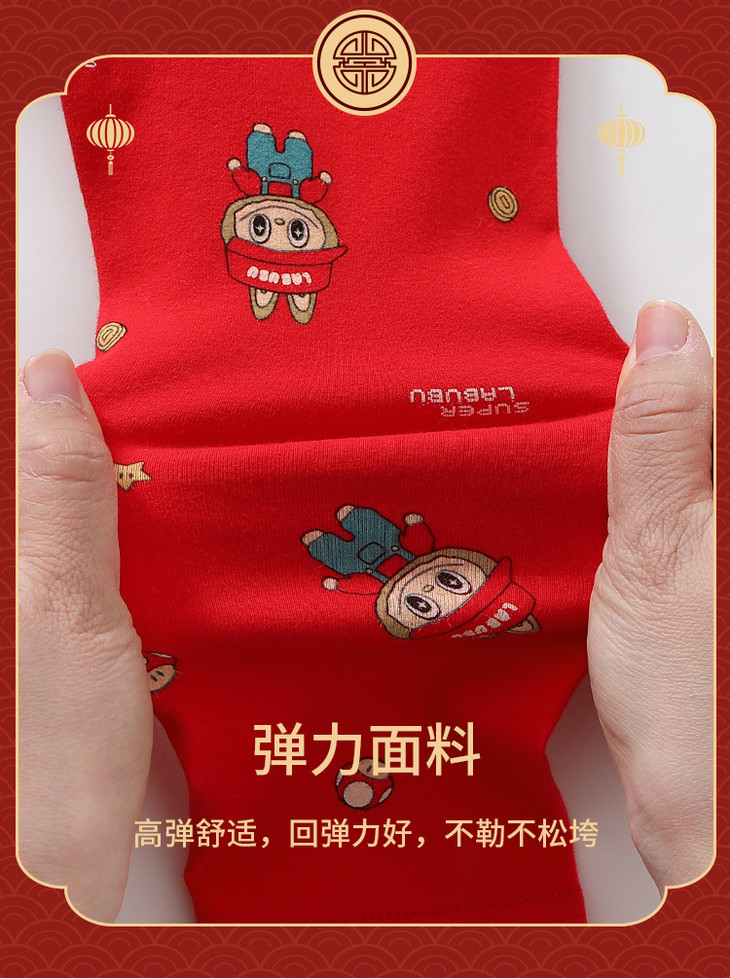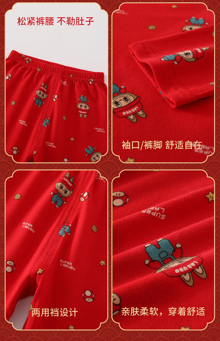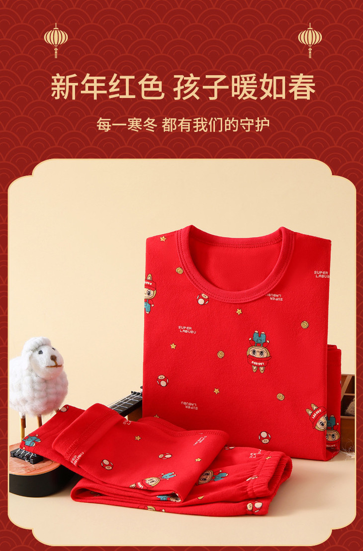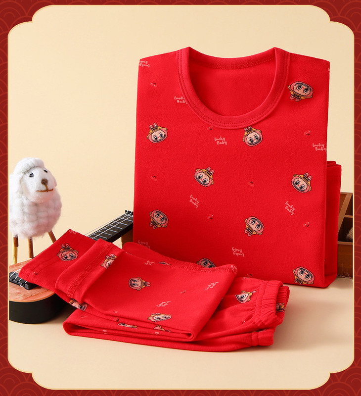 2026年马年新年儿童纯棉A类大红色秋衣秋裤新年福气无骨莱卡套装童秋睡衣男女童宝宝内衣家居服套装90-160