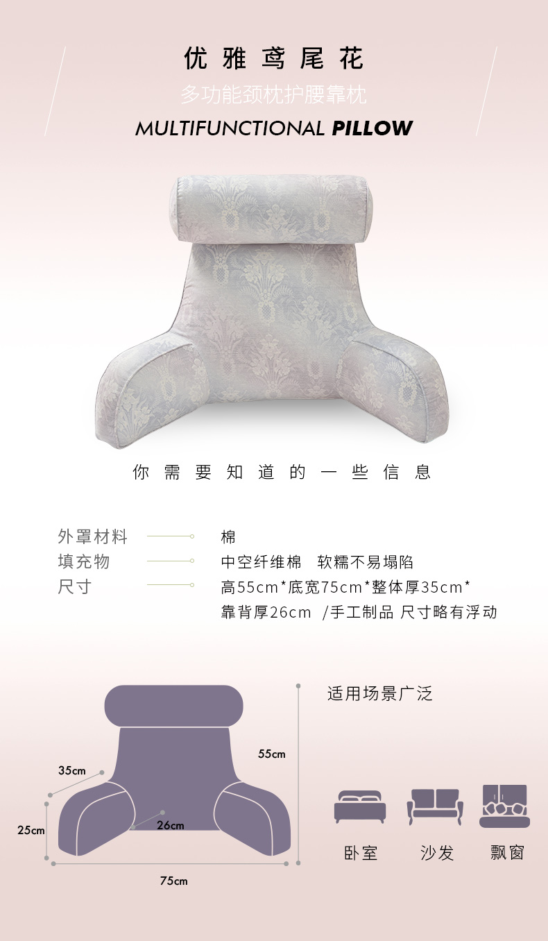优雅鸢尾系列颈枕护腰靠大靠背卧室榻榻米护腰沙发飘窗护颈枕可拆洗
