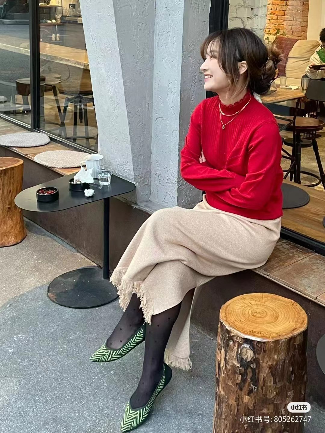可以搭配一些颜色鲜艳的毛衣和裙装来点亮造型