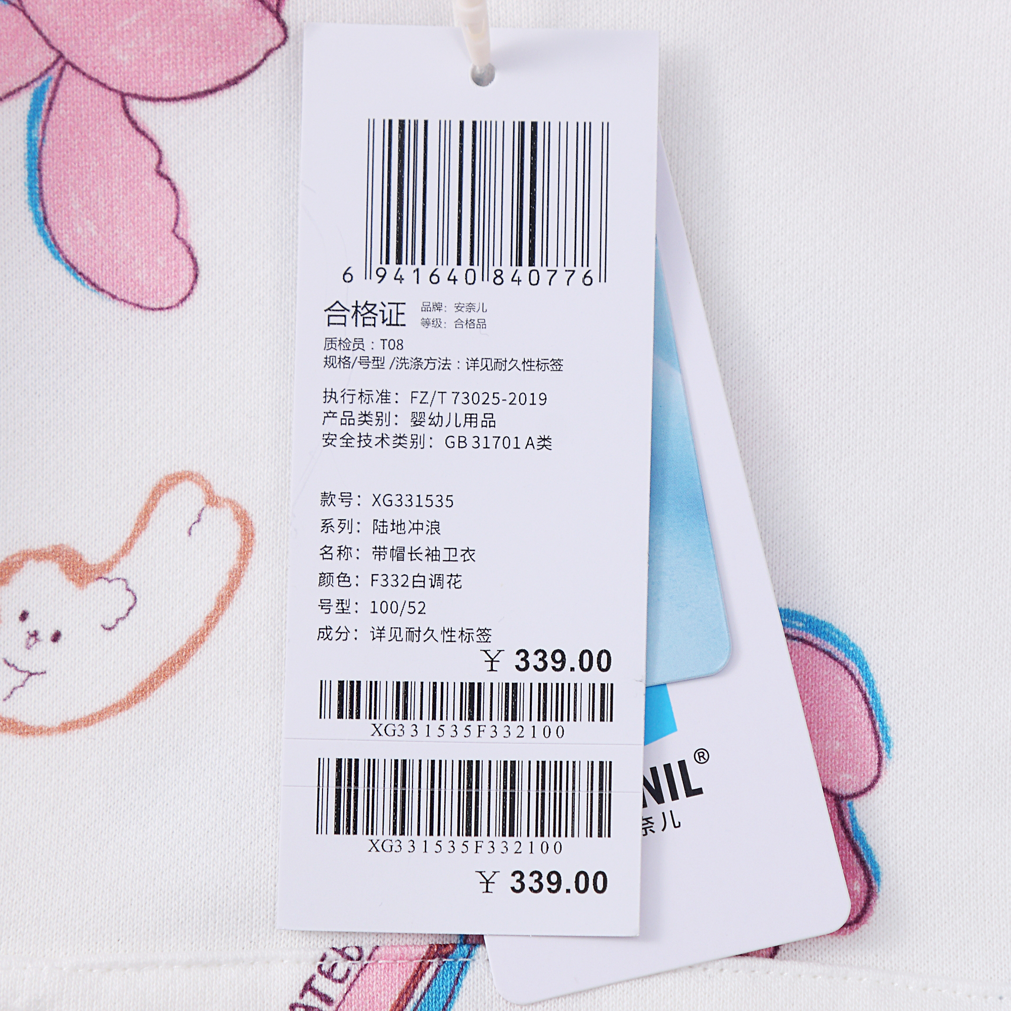 【实体店同款】女童带帽长袖卫衣2023年秋季新款安奈儿童装XG331535