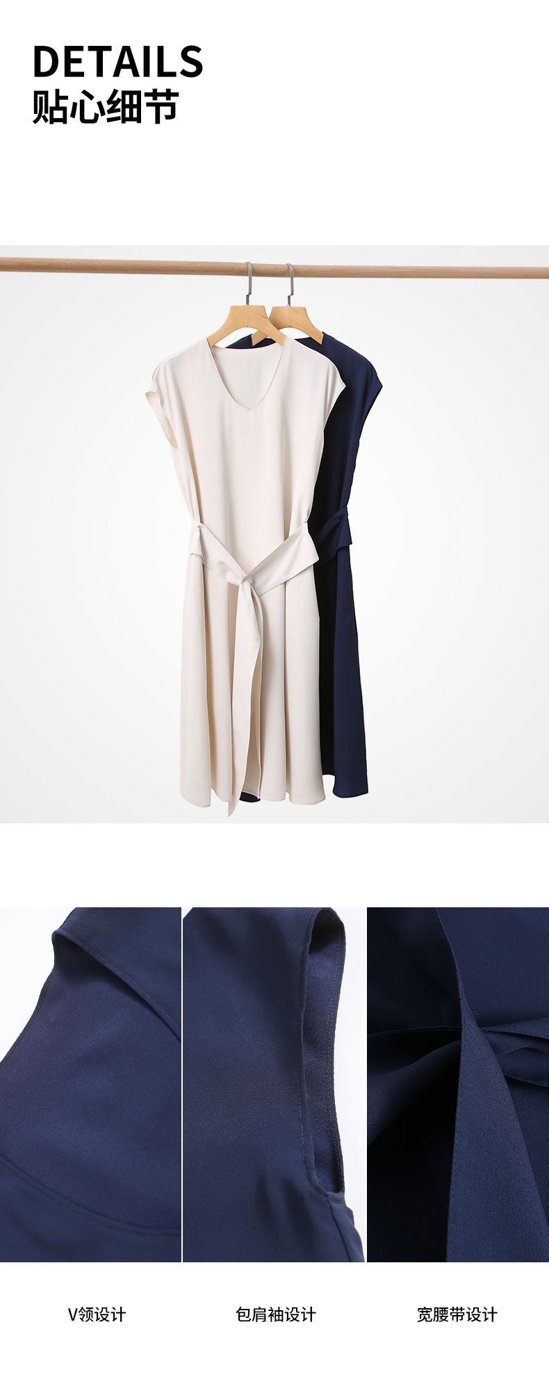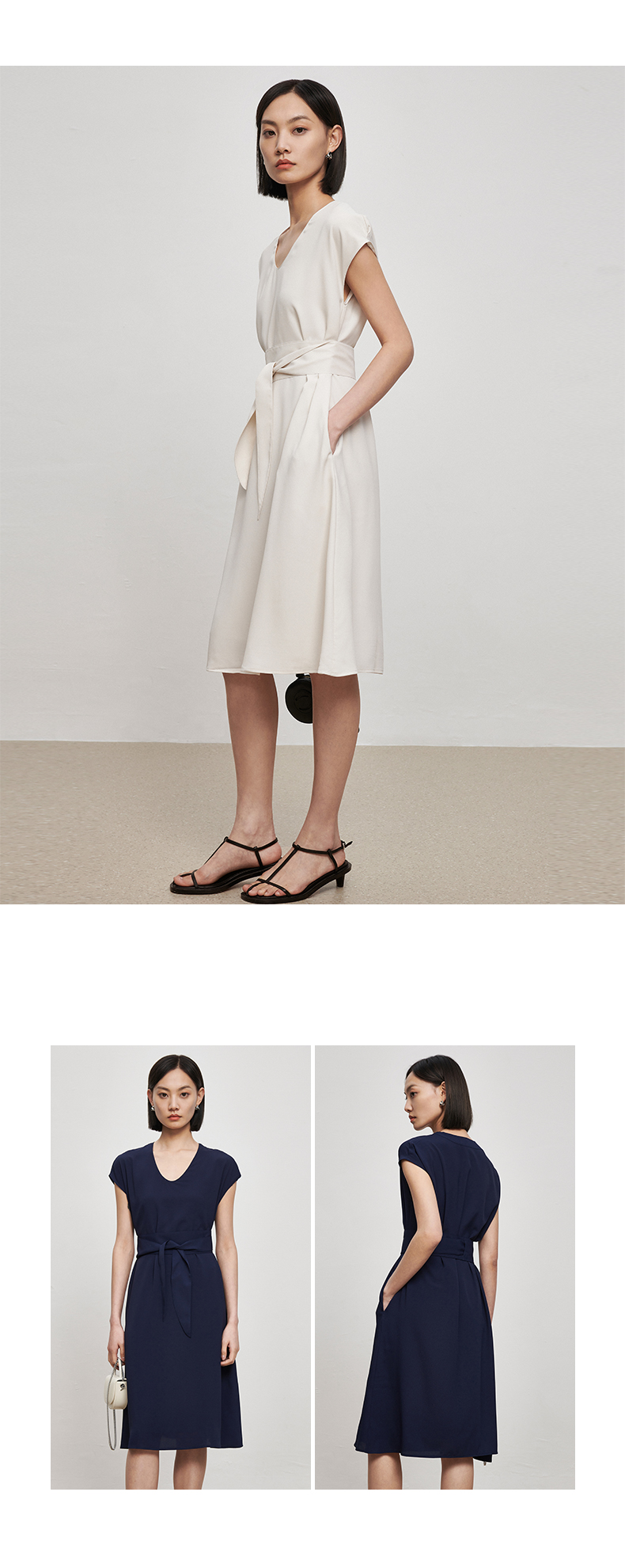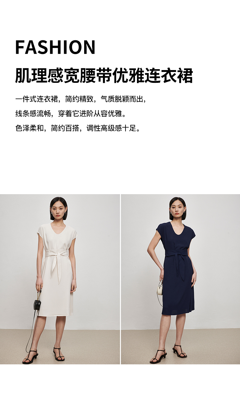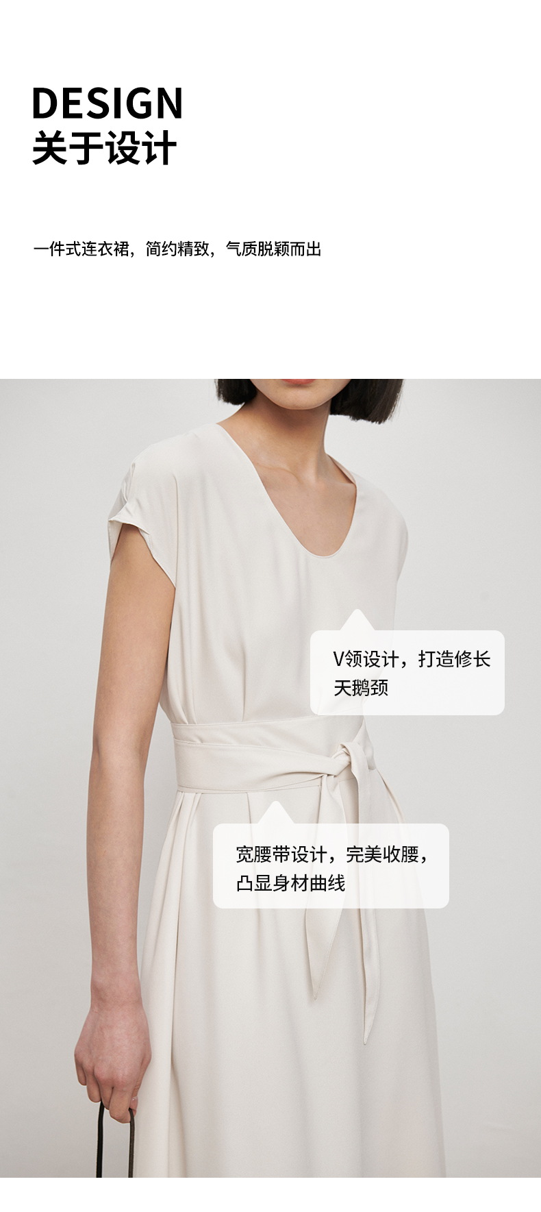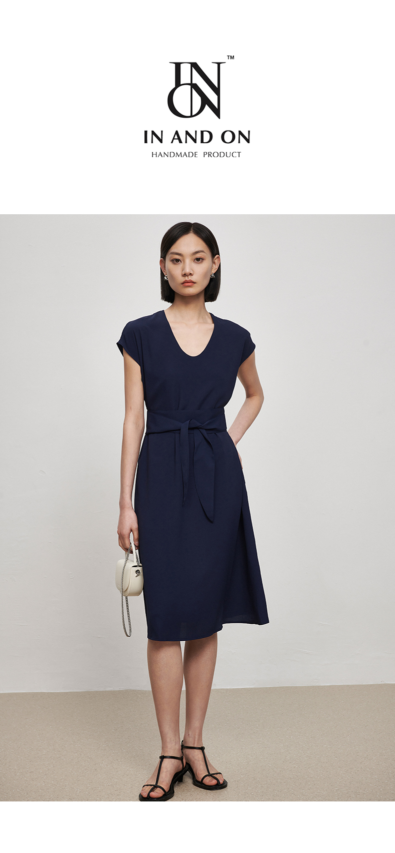 IN AND ON21870新款夏法式赫本风连衣裙女高腰显瘦V领气质收腰长裙