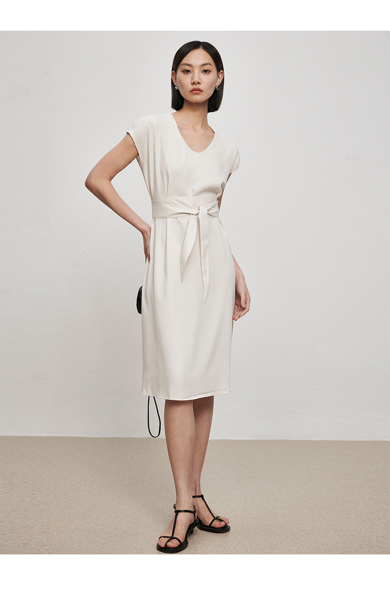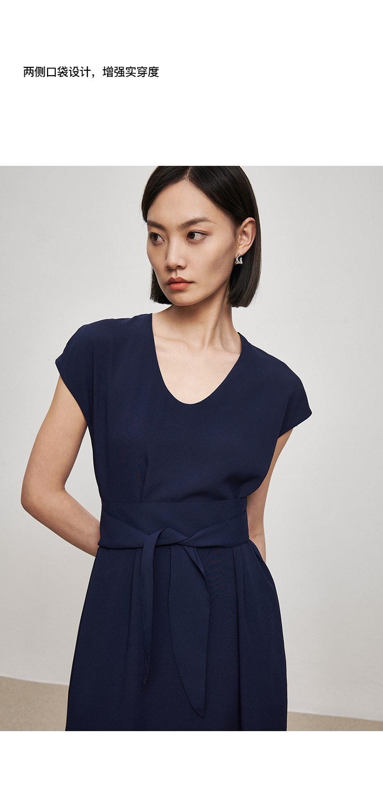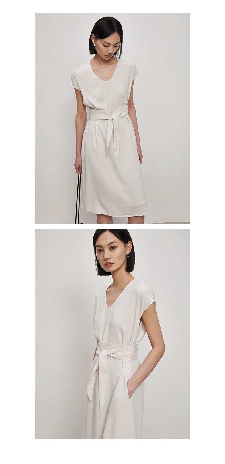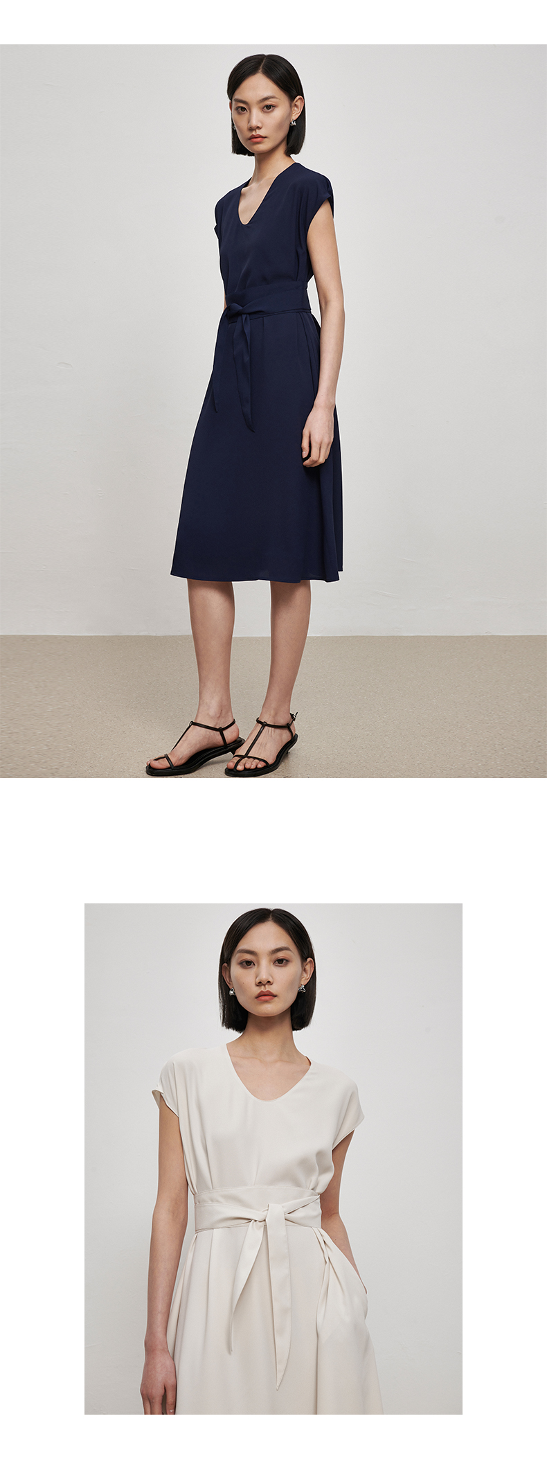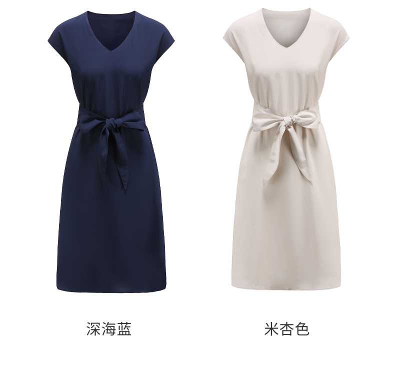 IN AND ON21870新款夏法式赫本风连衣裙女高腰显瘦V领气质收腰长裙