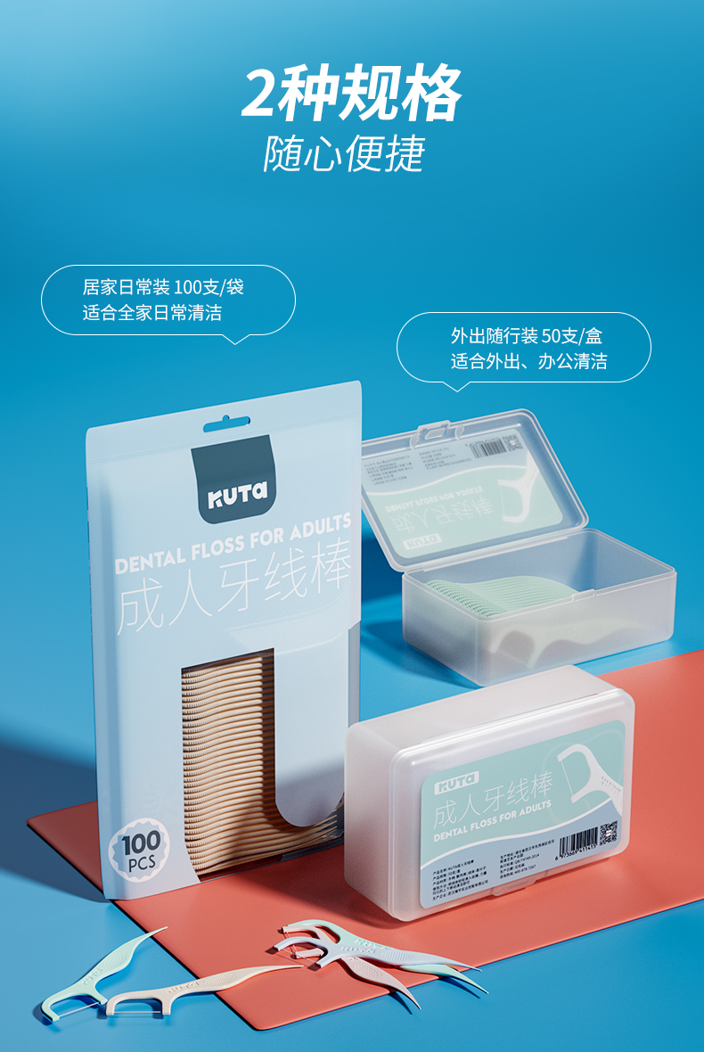 今天要给大家推荐一个能轻松揪出卡在牙缝里的菜叶、肉丝的小东西—— 对,它就是KUTA全新推出的成人牙线棒。