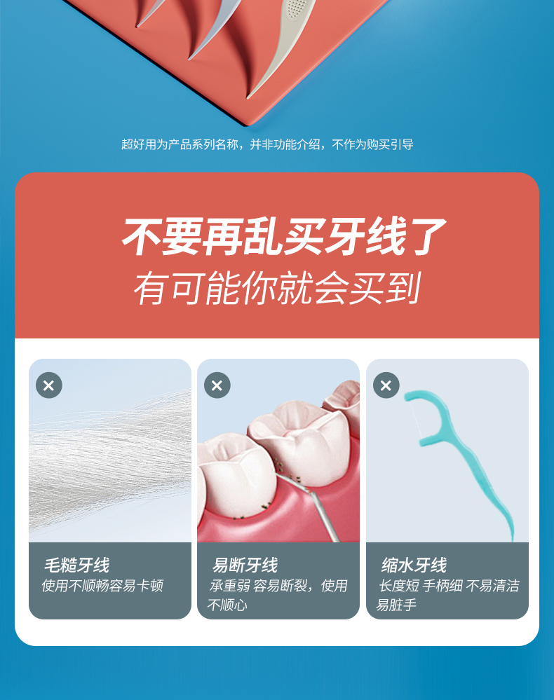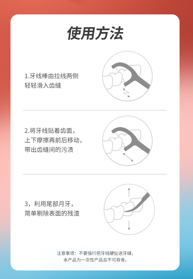 它能够有效清理牙缝间的软垢和食物残渣,保持牙齿邻面的清洁。这一点,是刷牙无法替代的哦~