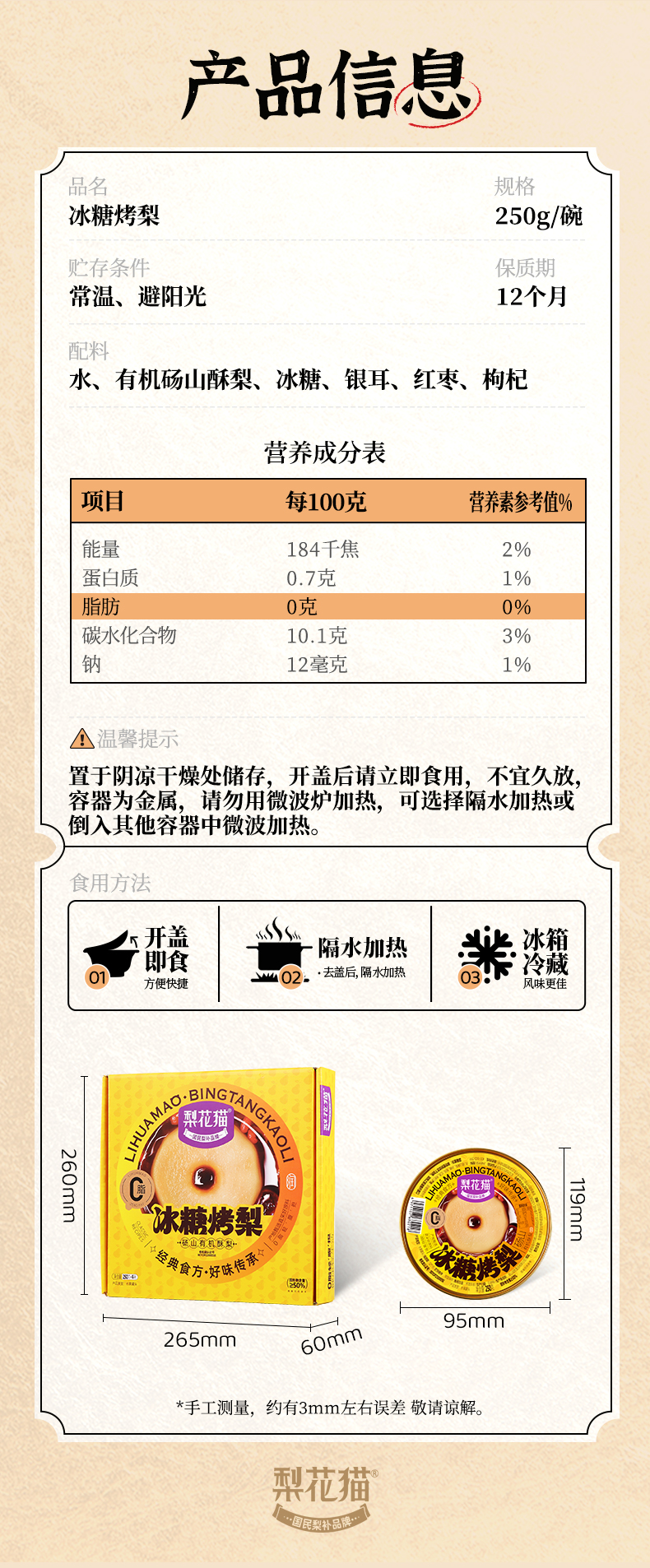 梨花猫冰糖烤梨250g*4碗/盒