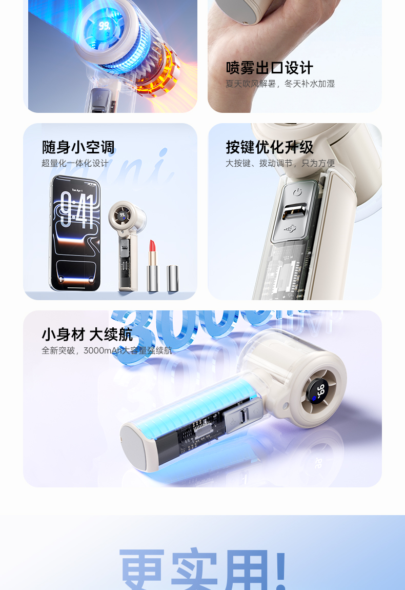 【加湿喷雾吹风 100档无极调速】笨笨马小风扇合集(BF19)