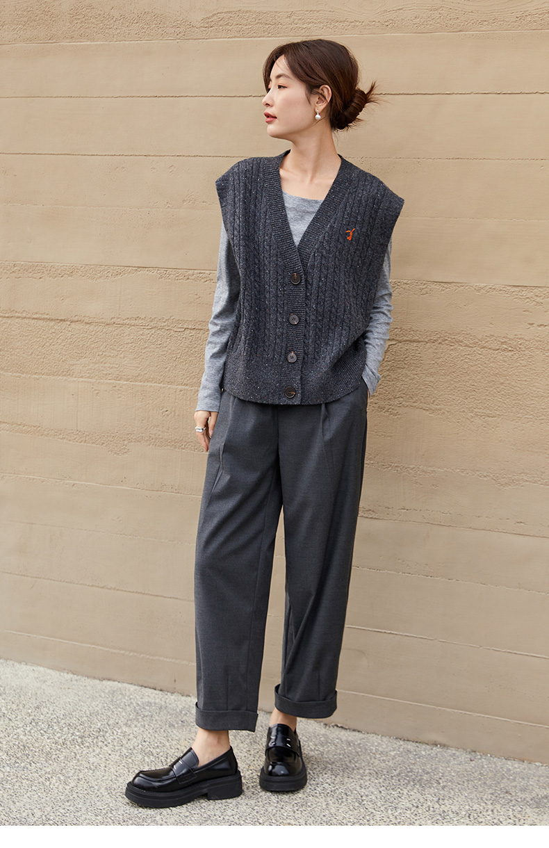 复古腔调!深灰色高腰直筒西装裤 宽松显瘦九分裤