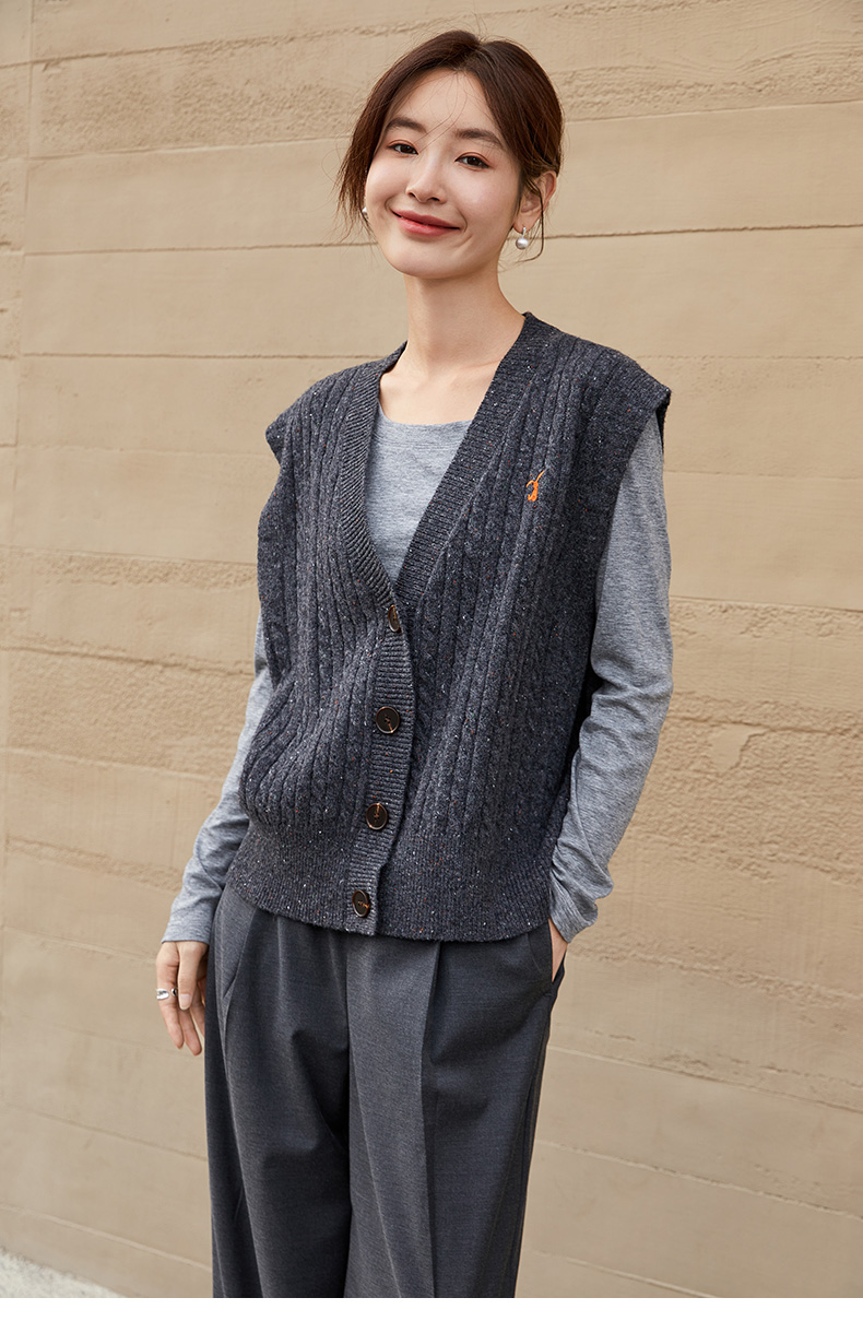 浅灰色 V 领针织吊带背心女 2026 春夏新款修身坑条内搭 显瘦无袖打底上衣
